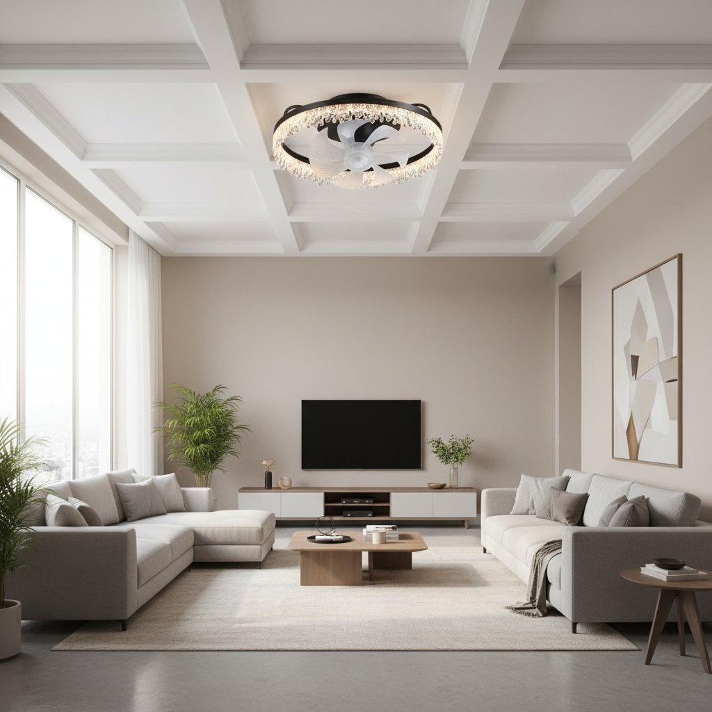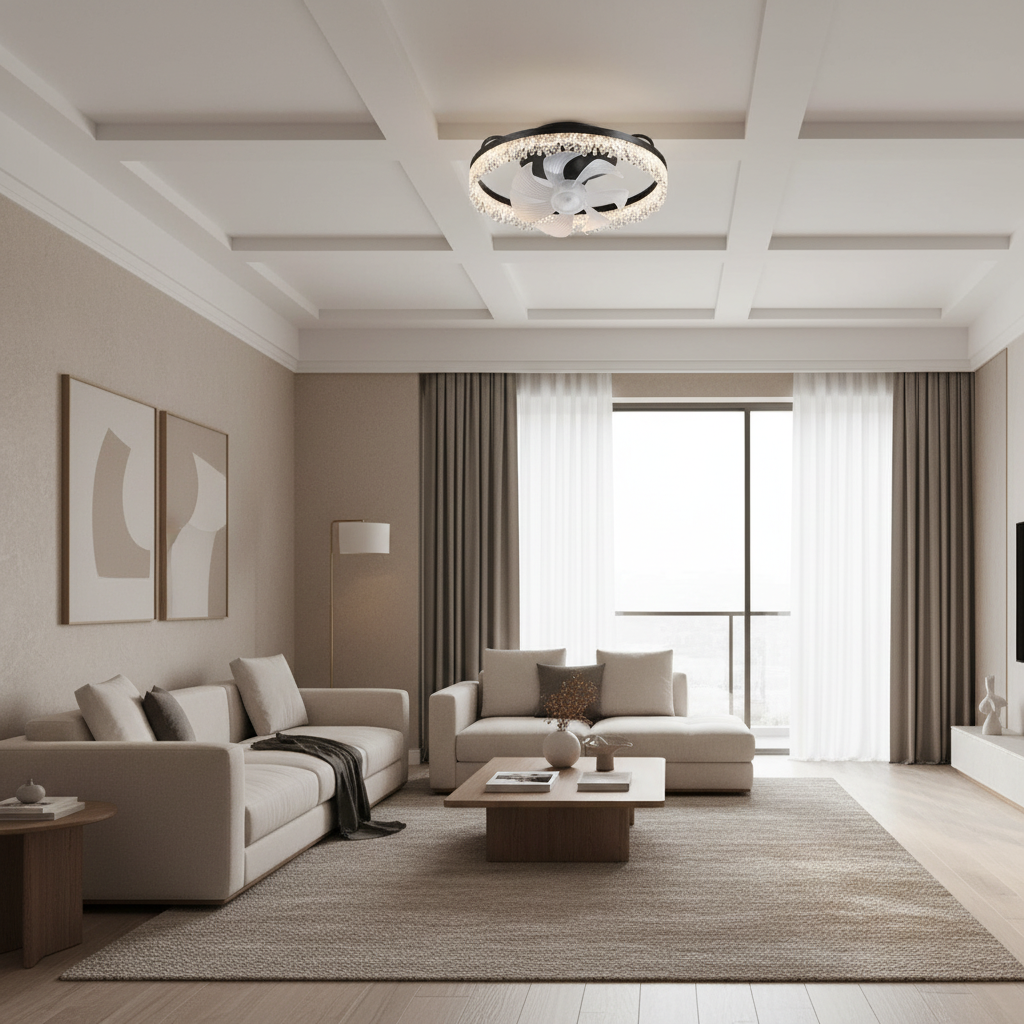 Ce lustre ventilateur contemporain allie l'élégance du cristal à une ventilation efficace et discrète. Son design innovant, avec ses pales invisibles, offre un confort thermique optimal et un éclairage LED brillant, transformant votre intérieur en un espace raffiné et rafraîchissant. Profitez de l'harmonie parfaite entre lumière et circulation d'air.Caractéristiques & performances