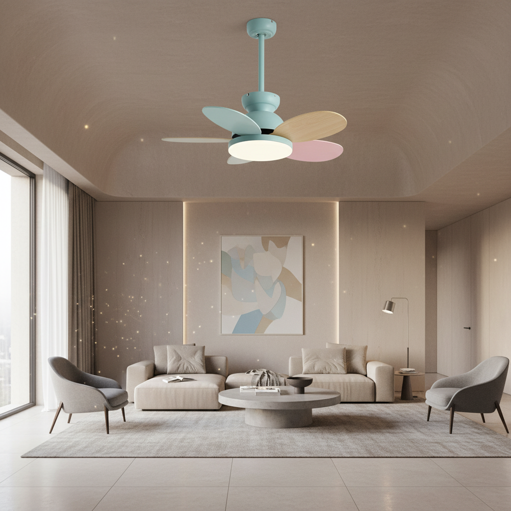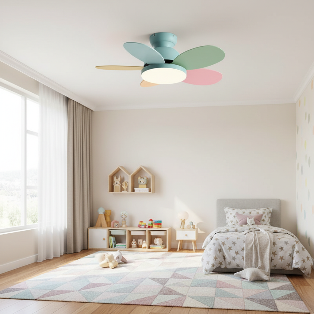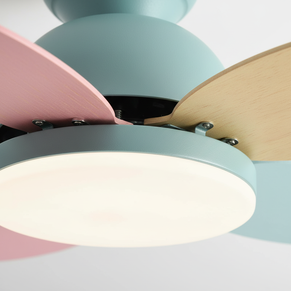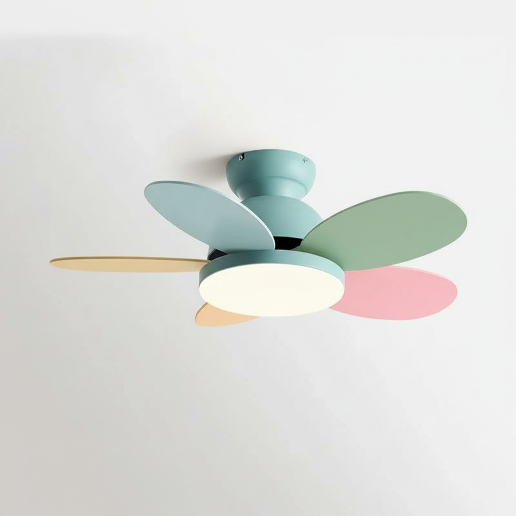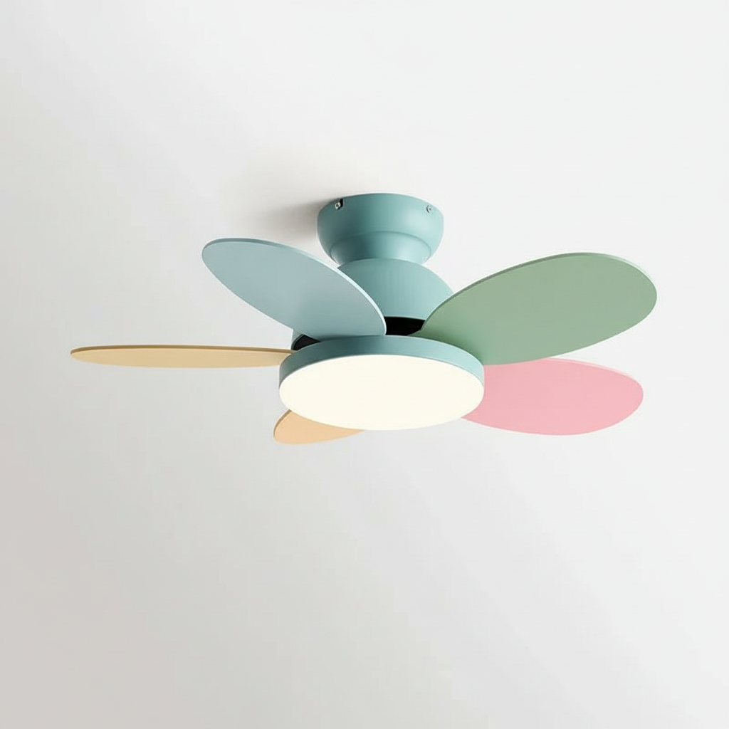 - Design moderne et pales colorées, idéal pour chambre d'enfant ou intérieur contemporain.