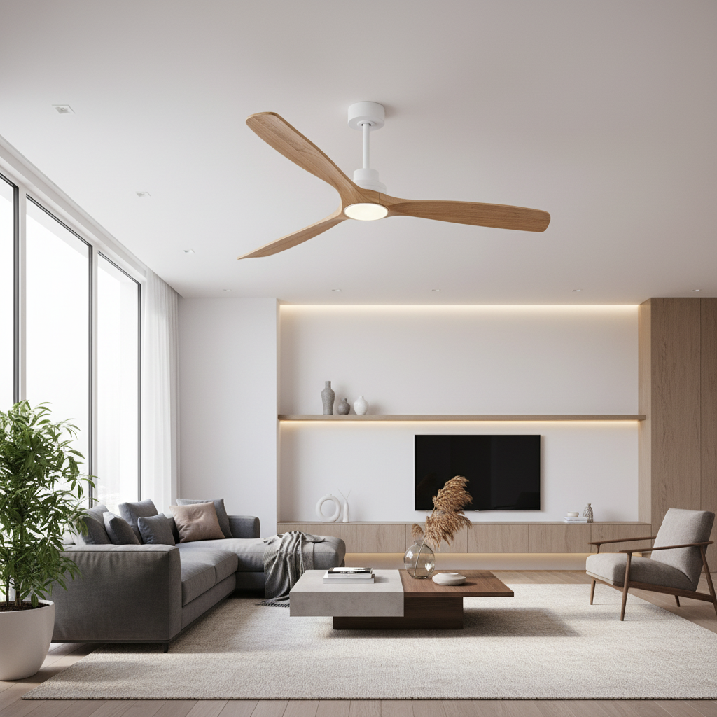 Ce ventilateur de plafond lumineux se distingue par ses pales en bois de qualité et son style moderne. L'éclairage LED est dimmable, offrant 3 températures de couleur (3000K, 4500K, 6000K). Son moteur DC silencieux et économe en énergie assure une ventilation efficace pour ce modèle à 3 pales. Contrôlable par télécommande, il convient aux espaces de 15 à 55 m².- Moteur DC silencieux en cuivre pur, confort acoustique optimal.