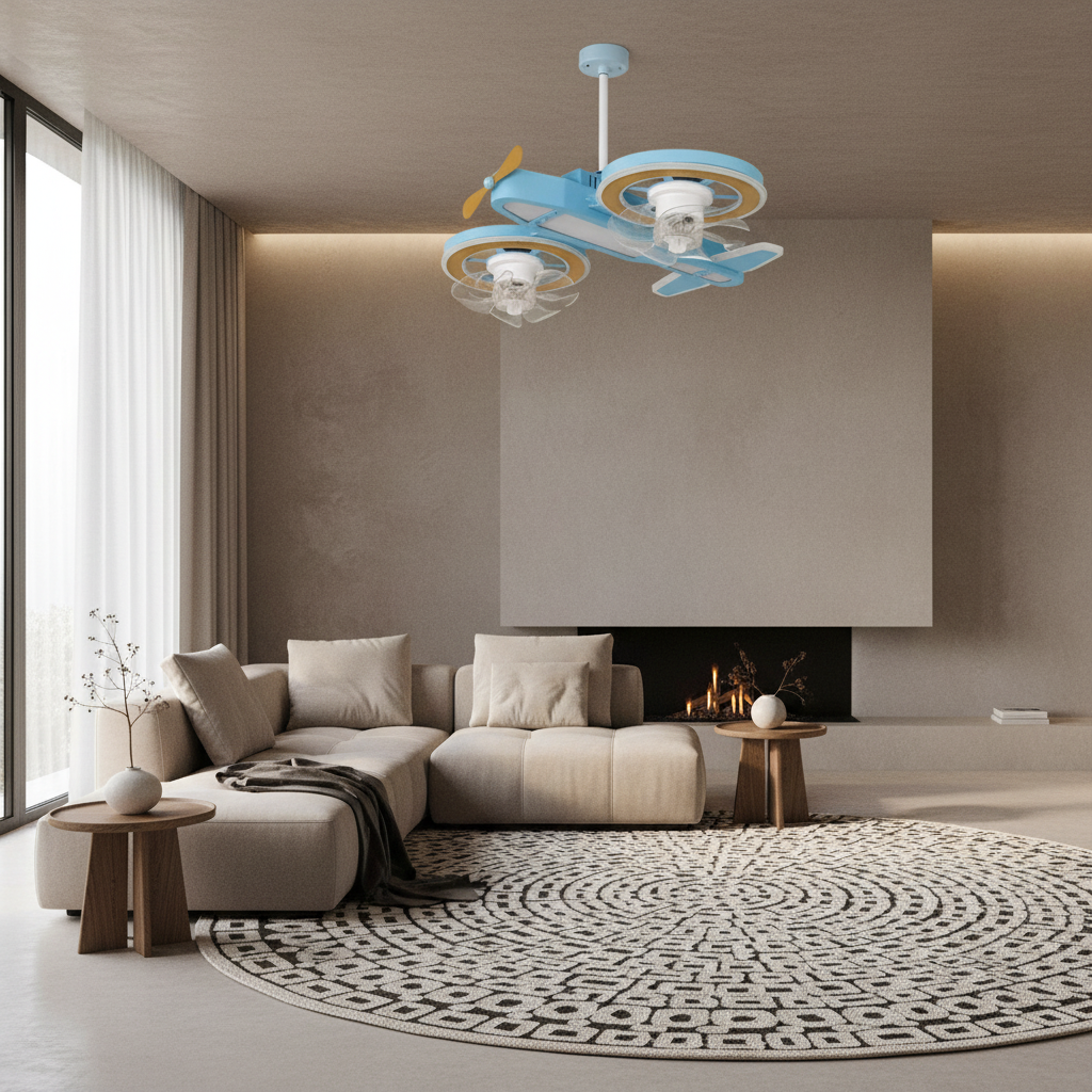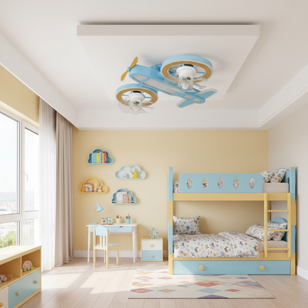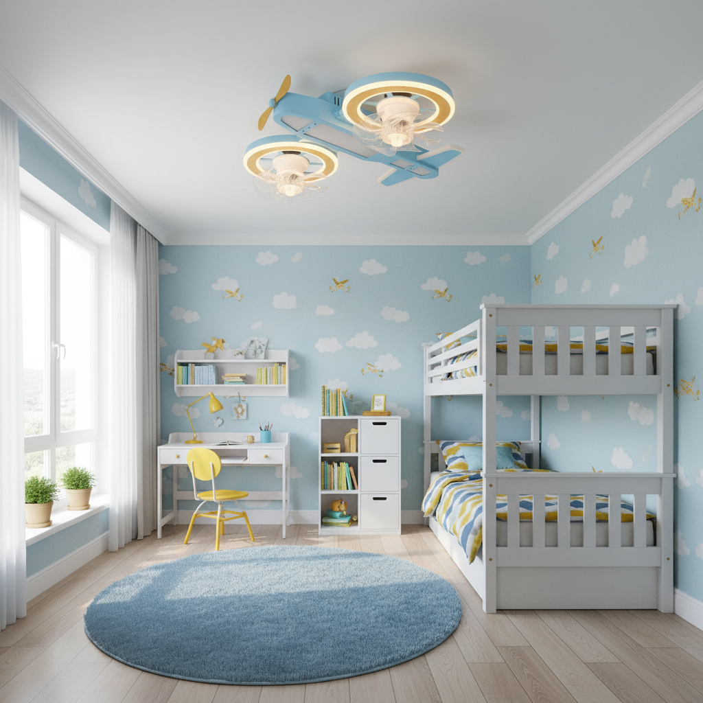Lustre Ventilateur Avion LED pour Chambre d'Enfant Moderne