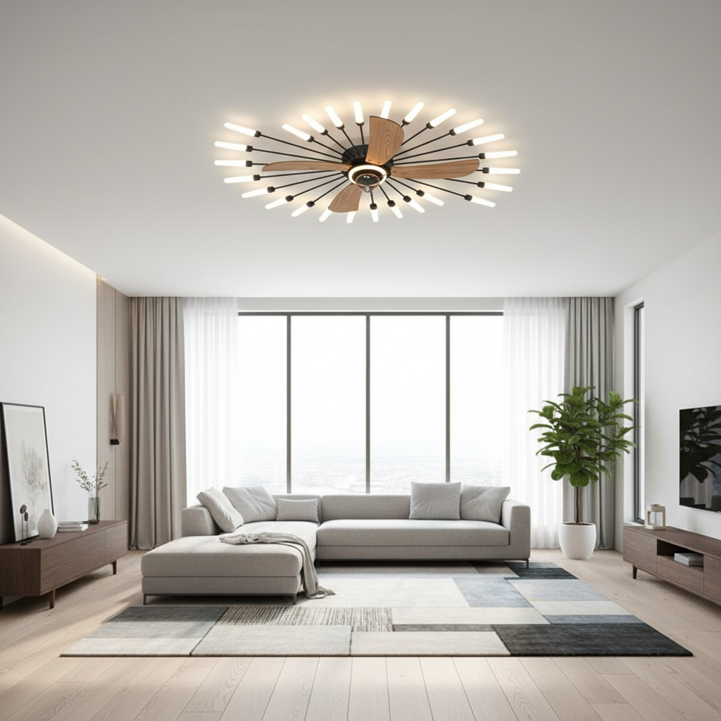 Ce lustre ventilateur combine un éclairage LED puissant et une ventilation discrète. Son design moderne en métal noir apporte élégance et confort, offrant une ambiance lumineuse personnalisée dans un appareil compact et stylé. Optimisez l'esthétique et le bien-être de votre pièce avec ce luminaire polyvalent.Caractéristiques & performances