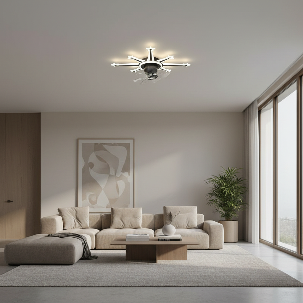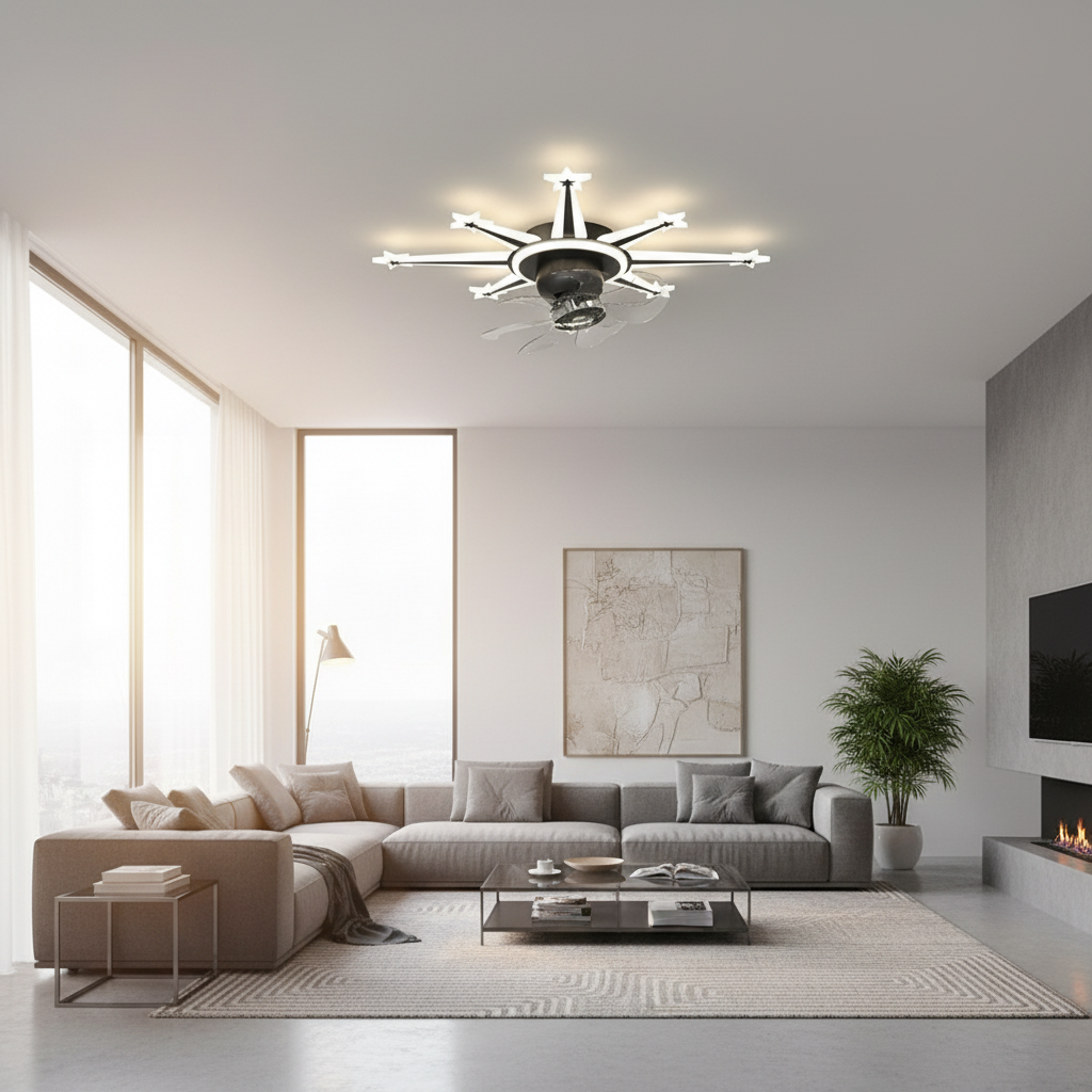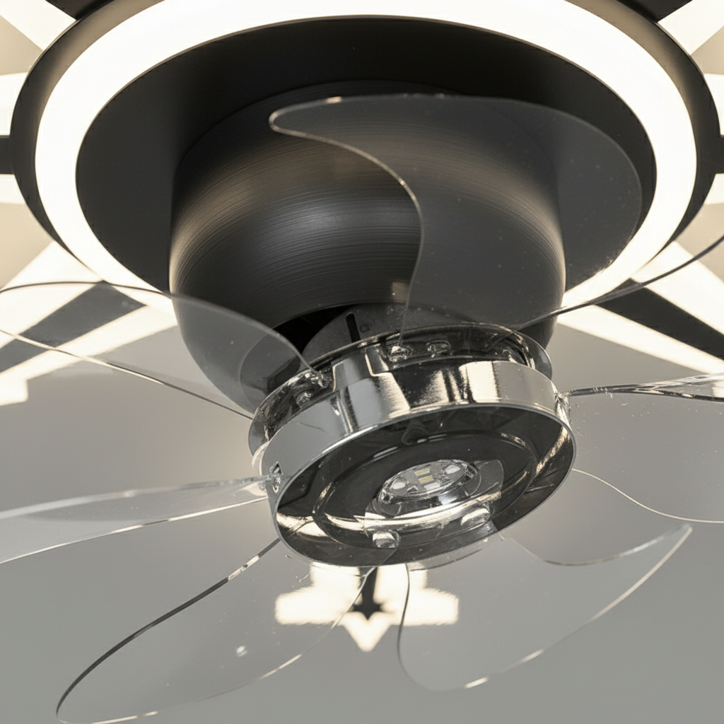 Ce lustre ventilateur allie l'élégance d'un luminaire design à l'efficacité d'un ventilateur de plafond. Ses pales rétractables discrètes et son éclairage LED dimmable transforment votre espace. Profitez d'un confort thermique optimal et d'une ambiance lumineuse personnalisée, le tout dans un style moderne noir et doré.Caractéristiques & performances