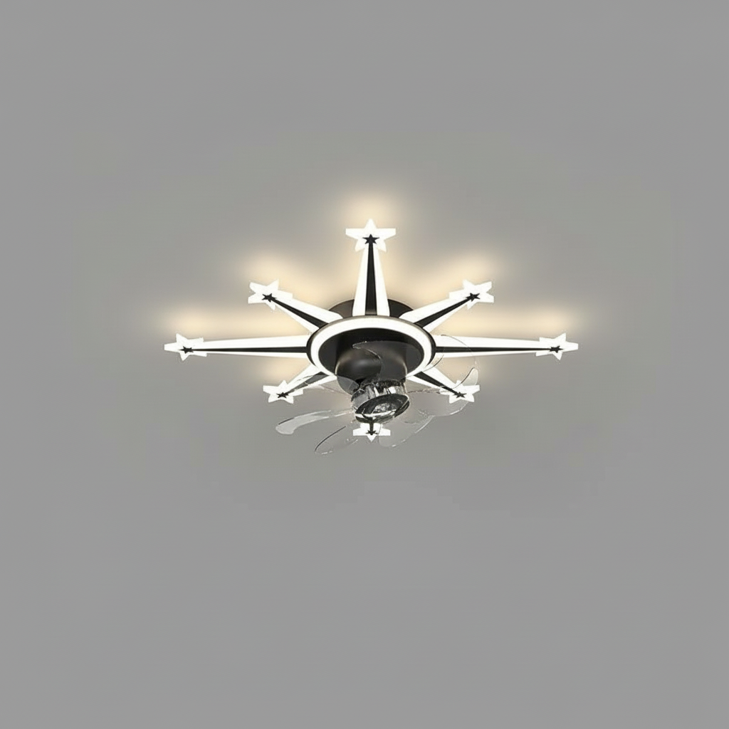 Lustre Ventilateur Rétractable LED Noir et Doré Moderne