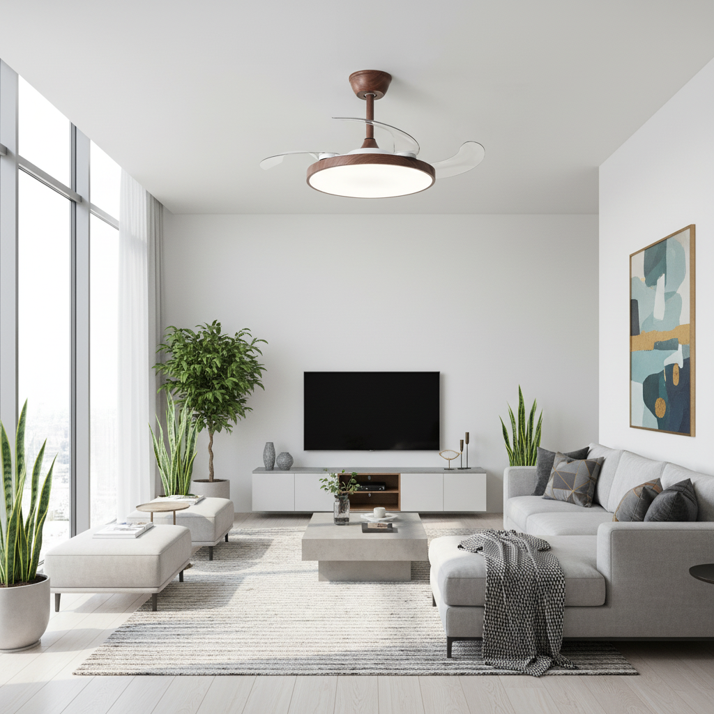 Lustre Ventilateur Rétractable LED Silencieux Moderne