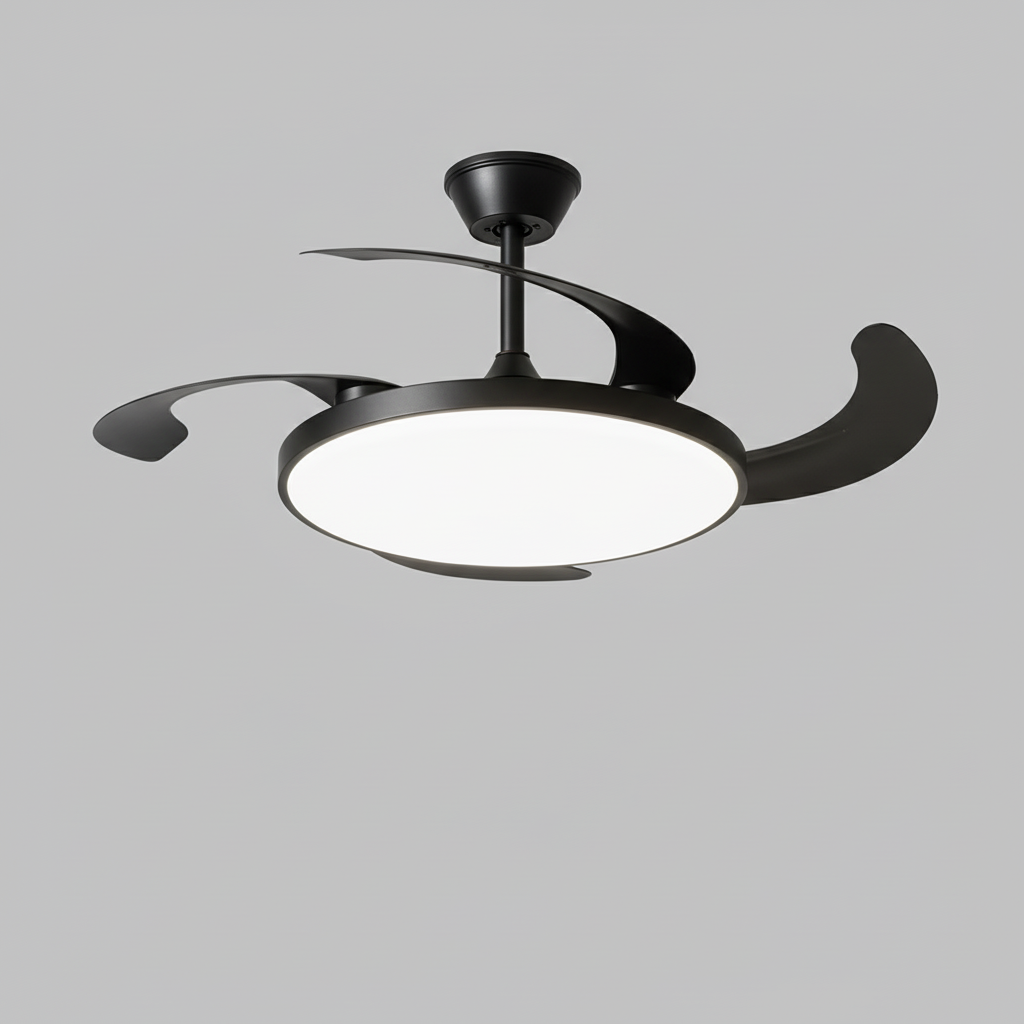 Ce lustre ventilateur noir moderne est une solution 2-en-1, alliant ventilation discrète et éclairage LED performant. Son design épuré et ses pales invisibles optimisent l'espace, offrant ambiance lumineuse personnalisable et confort thermique idéal pour votre intérieur contemporain.