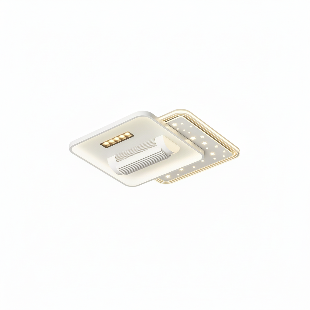 Conçu avec des matériaux robustes tels que le fer forgé et l'acrylique, ce lustre ventilateur arbore un style moderne et épuré. Ses dimensions de 50x50x10cm intègrent discrètement un système de ventilation invisible. L'éclairage LED dimmable et à spectre complet (55W, ≥97) assure une lumière de qualité supérieure. Le contrôle par télécommande simplifie son usage, idéal pour les salons de 10 à 15m².- Ventilation invisible et efficace pour un confort thermique discret.