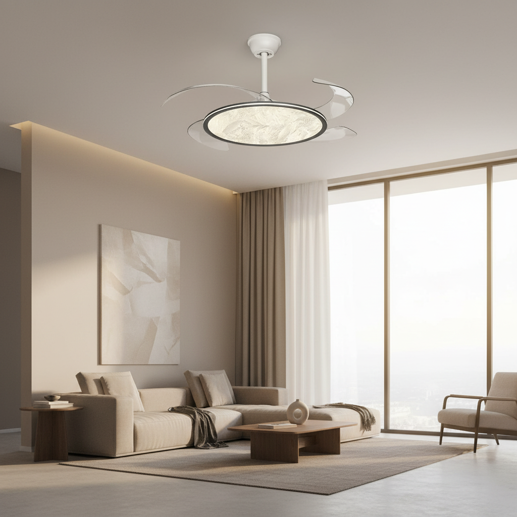 Découvrez ce lustre ventilateur, fusion de discrétion et performance. Son design moderne, avec pales rétractables, offre une solution élégante pour rafraîchir et illuminer votre intérieur. Profitez d'une ambiance lumineuse personnalisable et d'une brise agréable, optimisant l'espace avec une esthétique épurée.Caractéristiques & performances