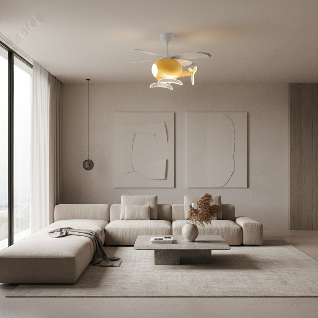 Offrez un luminaire unique et fonctionnel avec ce lustre ventilateur hélicoptère. Il combine ventilation agréable, éclairage LED de qualité et un design ludique en ABS, assurant confort thermique et ambiance fantaisiste dans la chambre de votre enfant.Caractéristiques & performances