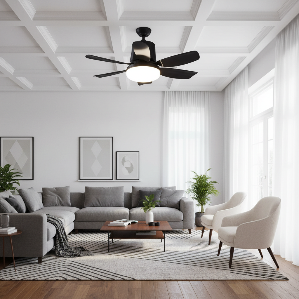 Chaque lustre ventilateur est soigneusement emballé dans un carton renforcé avec protections en mousse pour garantir une réception sans casse.