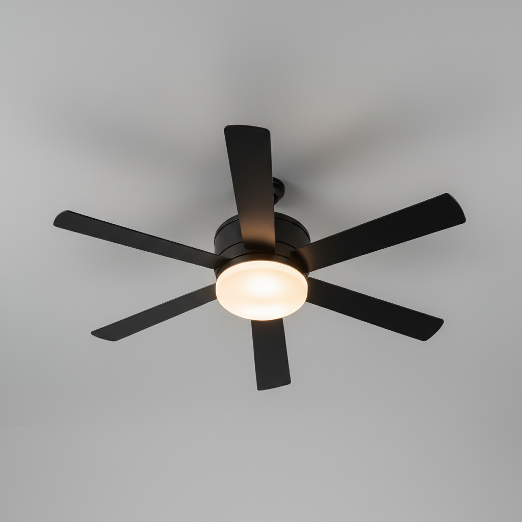 Ce modèle de style moderne, fabriqué en ABS, PC et Nylon, mesure 470mm de diamètre pour 180mm de hauteur. Idéal pour chambres et espaces de vie, il intègre un éclairage LED RGB dimmable (ampoules E27 incluses) et 5 pales assurant 3 vitesses de ventilation. Entièrement pilotable par télécommande, il garantit un fonctionnement silencieux.
