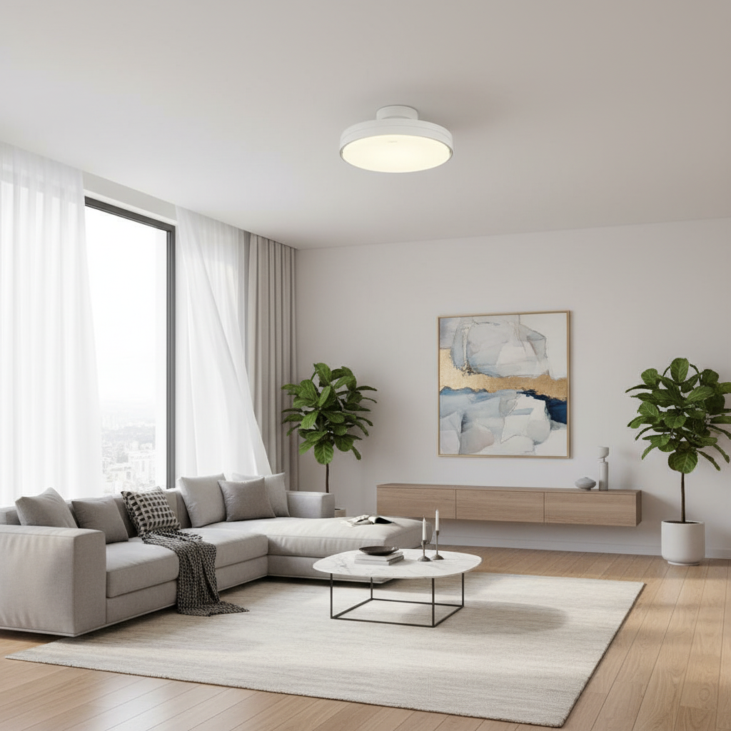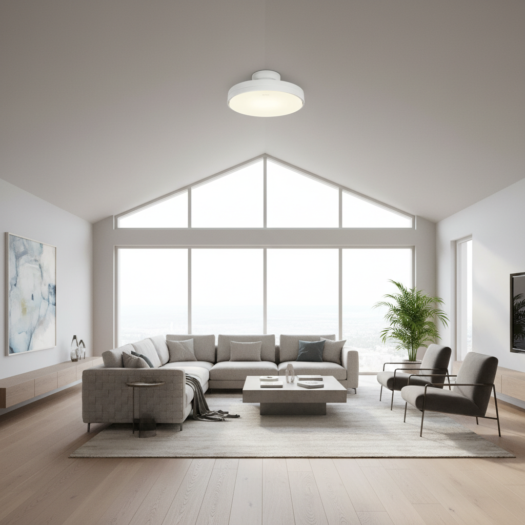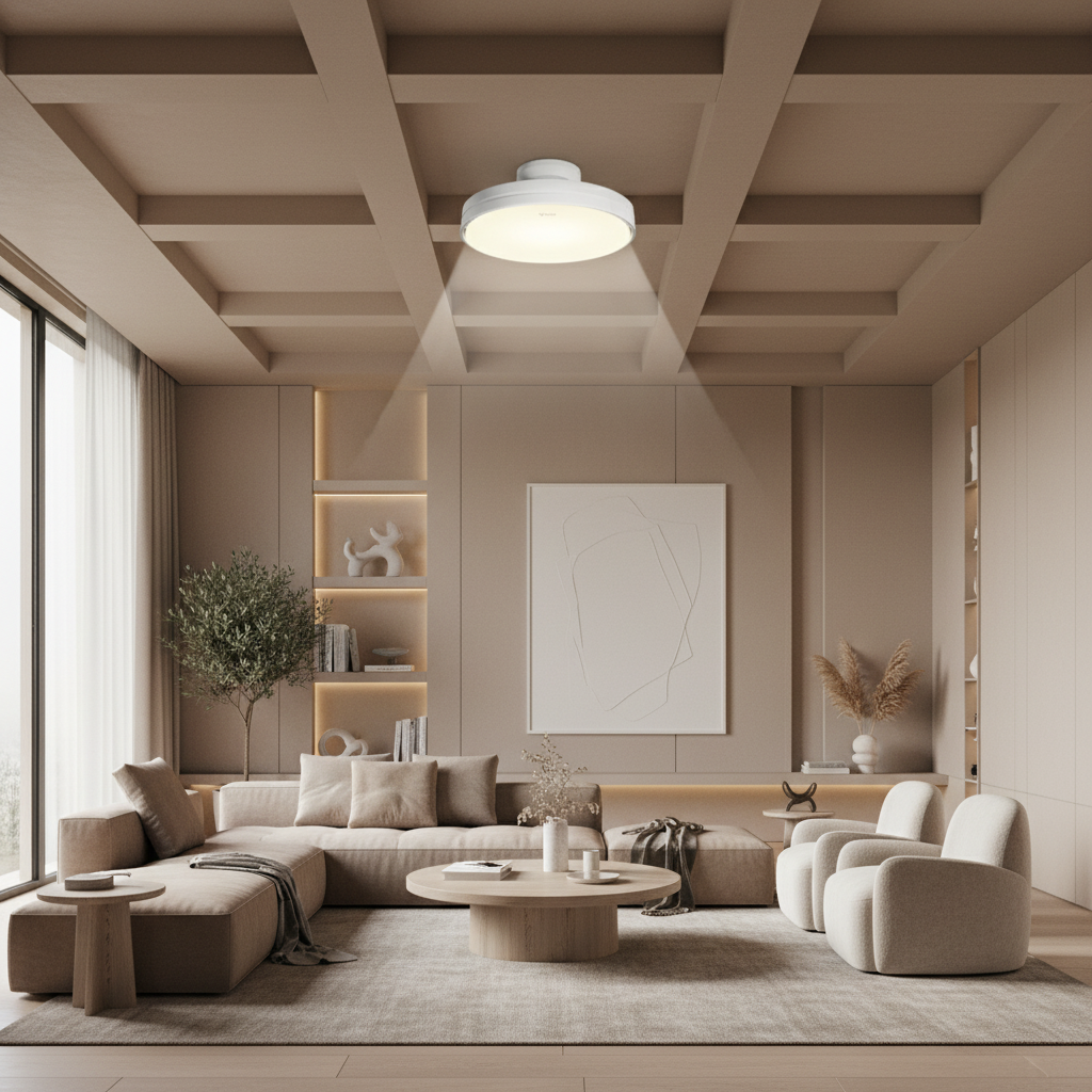 Ce modèle de 514 mm intègre un luminaire LED et un ventilateur discret. L'éclairage LED dimmable propose trois températures de couleur (3000K, 4000K, 5700K) avec un CRI Ra97. Sa conception sans pales assure un fonctionnement ultra-silencieux (40 dB max) et une sécurité optimale.- Ventilation puissante (64 m³/min) avec 6 niveaux de vitesse.