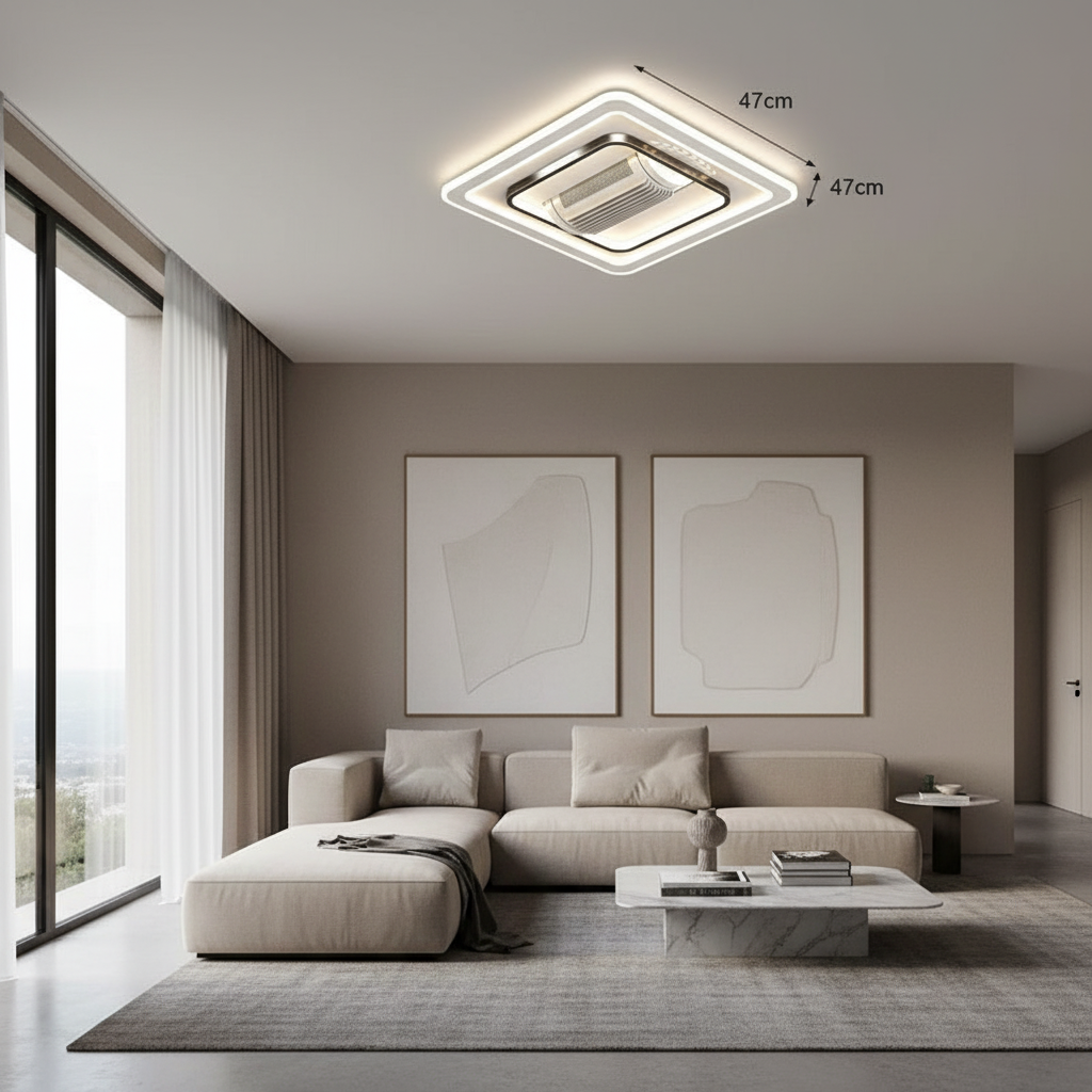 Ce lustre ventilateur moderne combine astucieusement un éclairage LED performant et une ventilation discrète. Son design sans pales apparentes offre une esthétique épurée, idéale pour optimiser l'espace tout en garantissant un confort thermique et une ambiance lumineuse personnalisée dans vos pièces de vie.