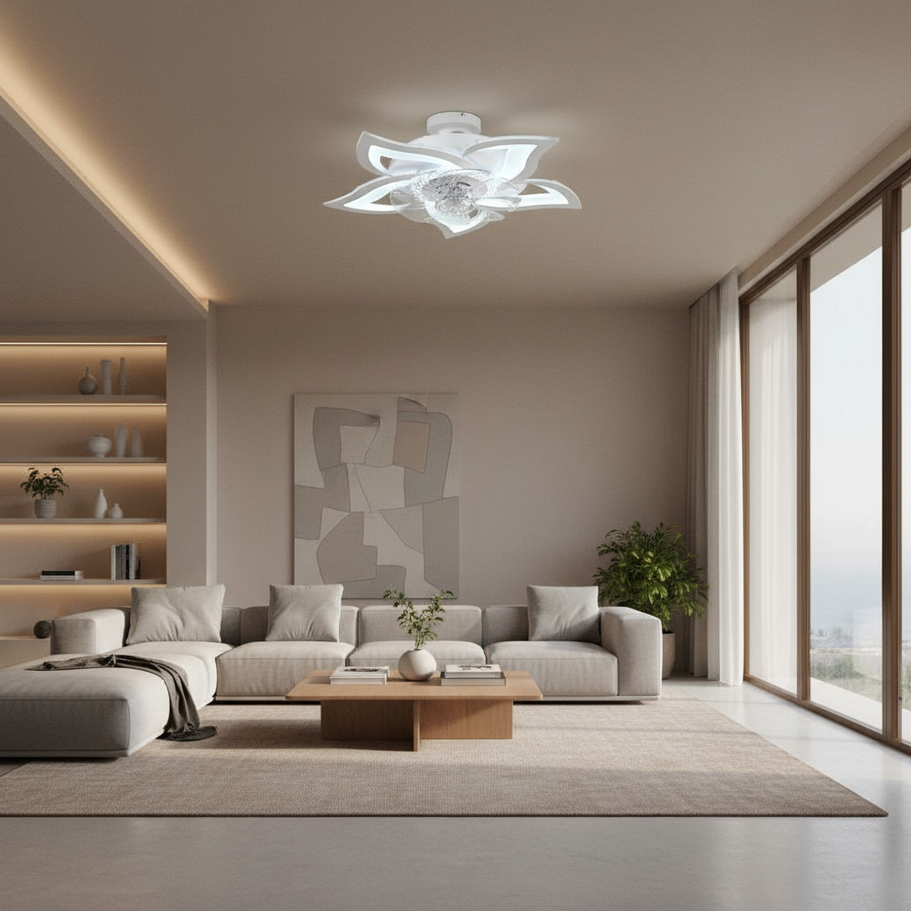 Lustre Ventilateur Moderne Fleur Dimmable App