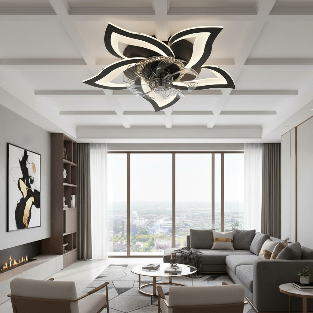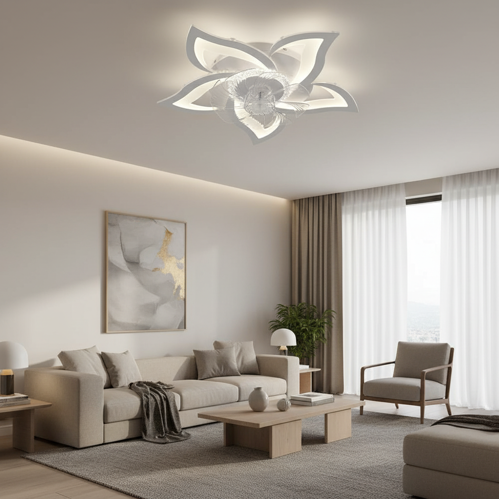 Profitez d'un confort optimal et d'une esthétique raffinée avec ce lustre ventilateur de plafond. Son design moderne et épuré, sans pales apparentes, intègre un éclairage LED performant et une ventilation discrète. Créez l'ambiance parfaite dans votre intérieur tout en bénéficiant d'un rafraîchissement agréable.Caractéristiques & performances