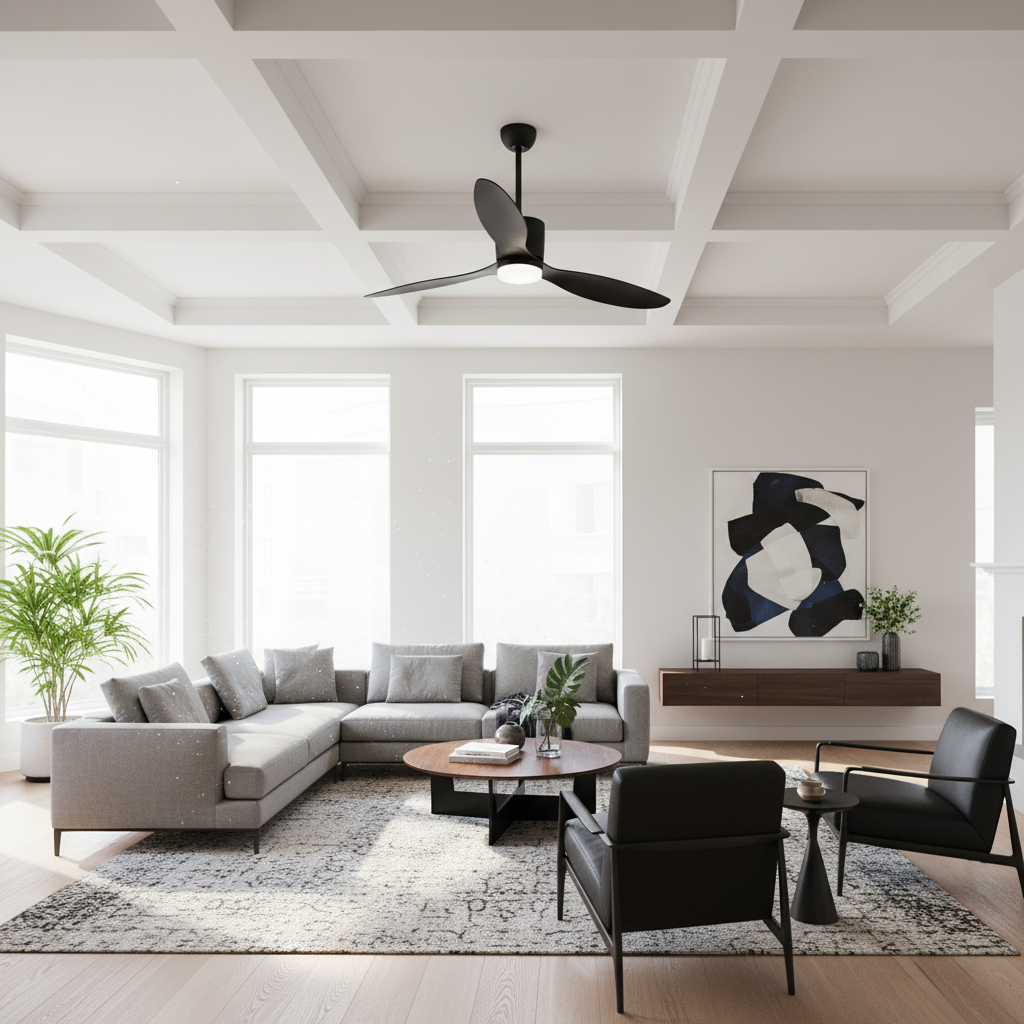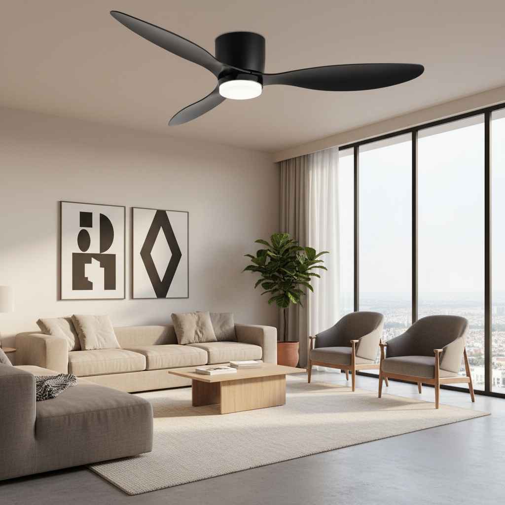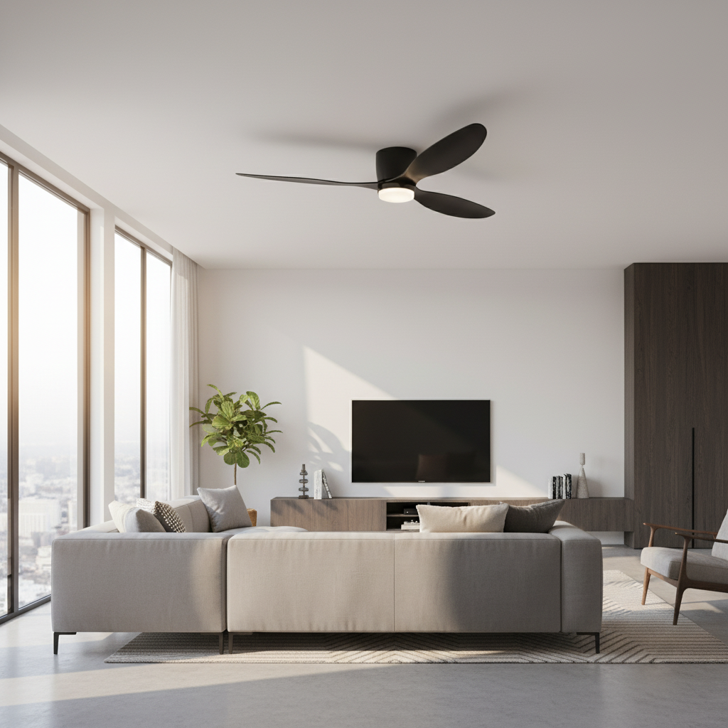 Ce lustre ventilateur noir extra plat allie design moderne, ventilation performante et éclairage LED intelligent. Il offre un confort thermique optimal et une ambiance lumineuse personnalisable, avec une discrétion absolue. Son esthétique épurée s'intègre parfaitement dans tout intérieur contemporain.
