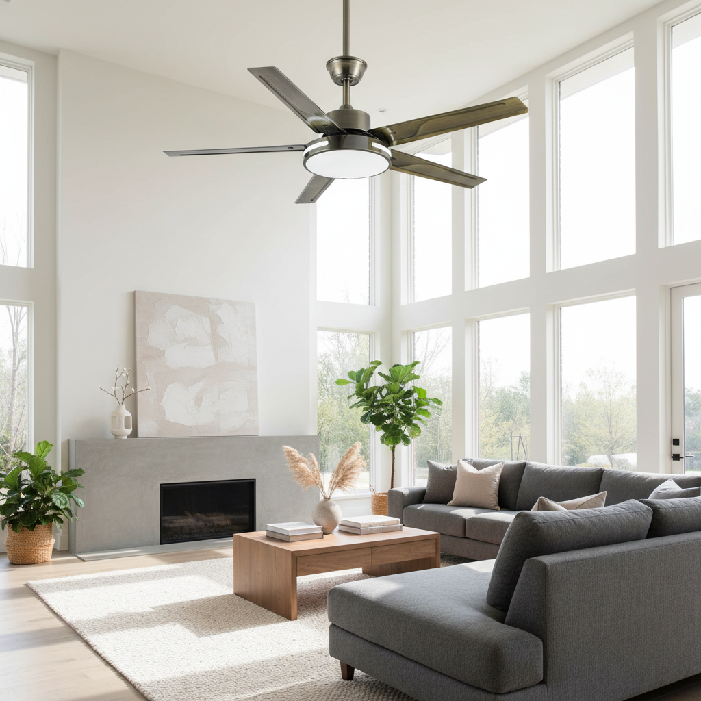 Ce ventilateur plafond lumineux, certifié CE, intègre cinq pales en ABS et un moteur DC pour un fonctionnement discret. L'éclairage LED offre trois températures de couleur, ajustables selon vos préférences. Il s'adapte parfaitement à toutes les pièces de vie: salon, cuisine, bureau, chambre ou balcon.- Ventilation silencieuse et puissante (moteur DC).