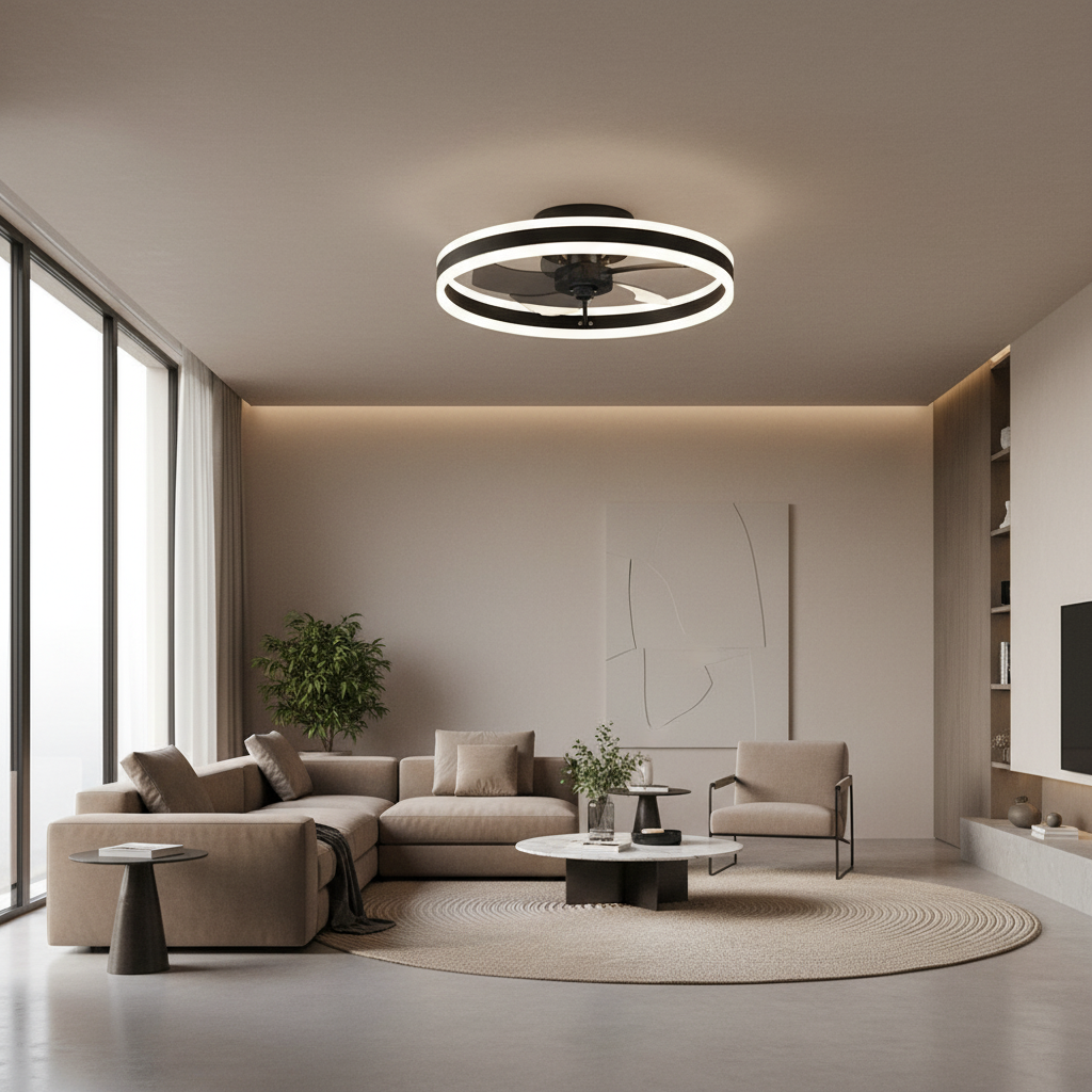 Ce ventilateur de plafond lumineux est conçu pour une performance optimale et une intégration discrète. Doté d'un moteur DC silencieux, il assure une ventilation puissante sans nuisance sonore. Ses pales en ABS, discrètement rétractables, se déploient pour un rafraîchissement ciblé et se replient pour une esthétique épurée. L'éclairage LED ajustable propose trois températures de couleur (3000K, 4500K, 6500K) pour s'adapter à chaque moment de la journée, le tout contrôlable via télécommande ou application mobile.- Ventilation puissante et silencieuse grâce au moteur DC.