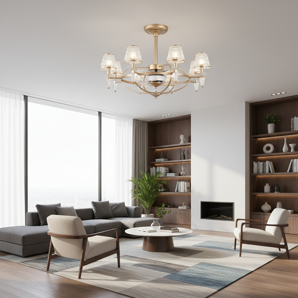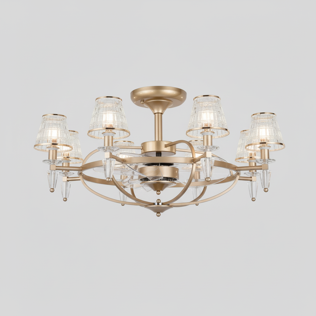 Lustre Ventilateur Luxe Cristal Invisible Anion