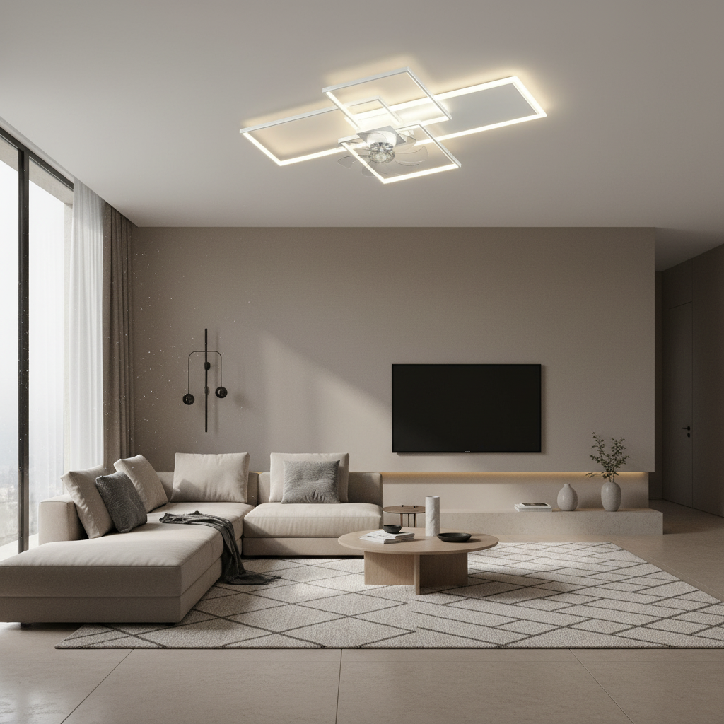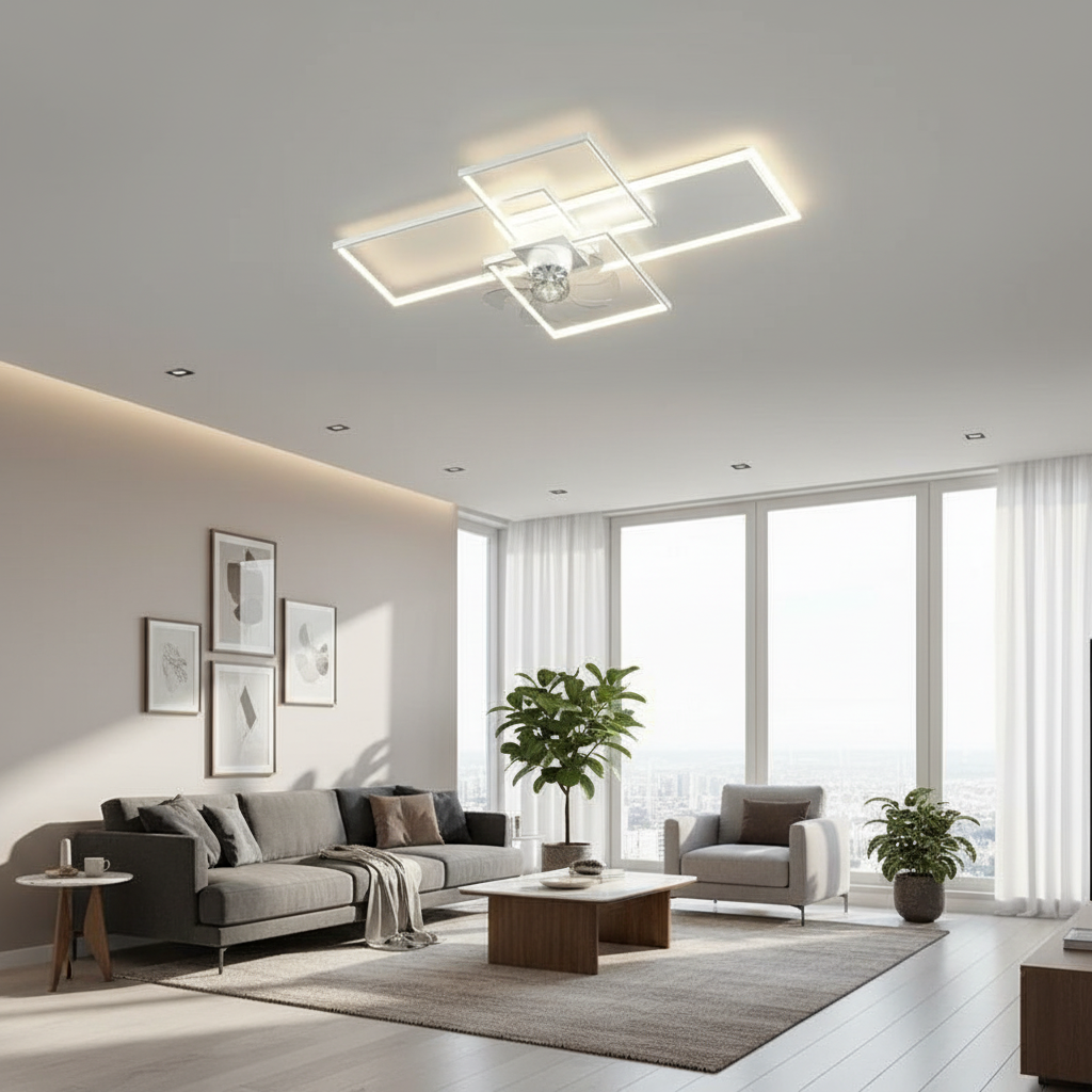Conçu avec un corps en aluminium et une finition en fer, ce lustre ventilateur moderne intègre des pales rétractables discrètes. Son éclairage LED est entièrement dimmable, offrant une luminosité adaptable à vos besoins. Avec des dimensions de 108x70x21 cm, il est idéal pour des pièces de 20 à 25 m², et se contrôle facilement via sa télécommande.- Ventilation efficace grâce aux pales rétractables.