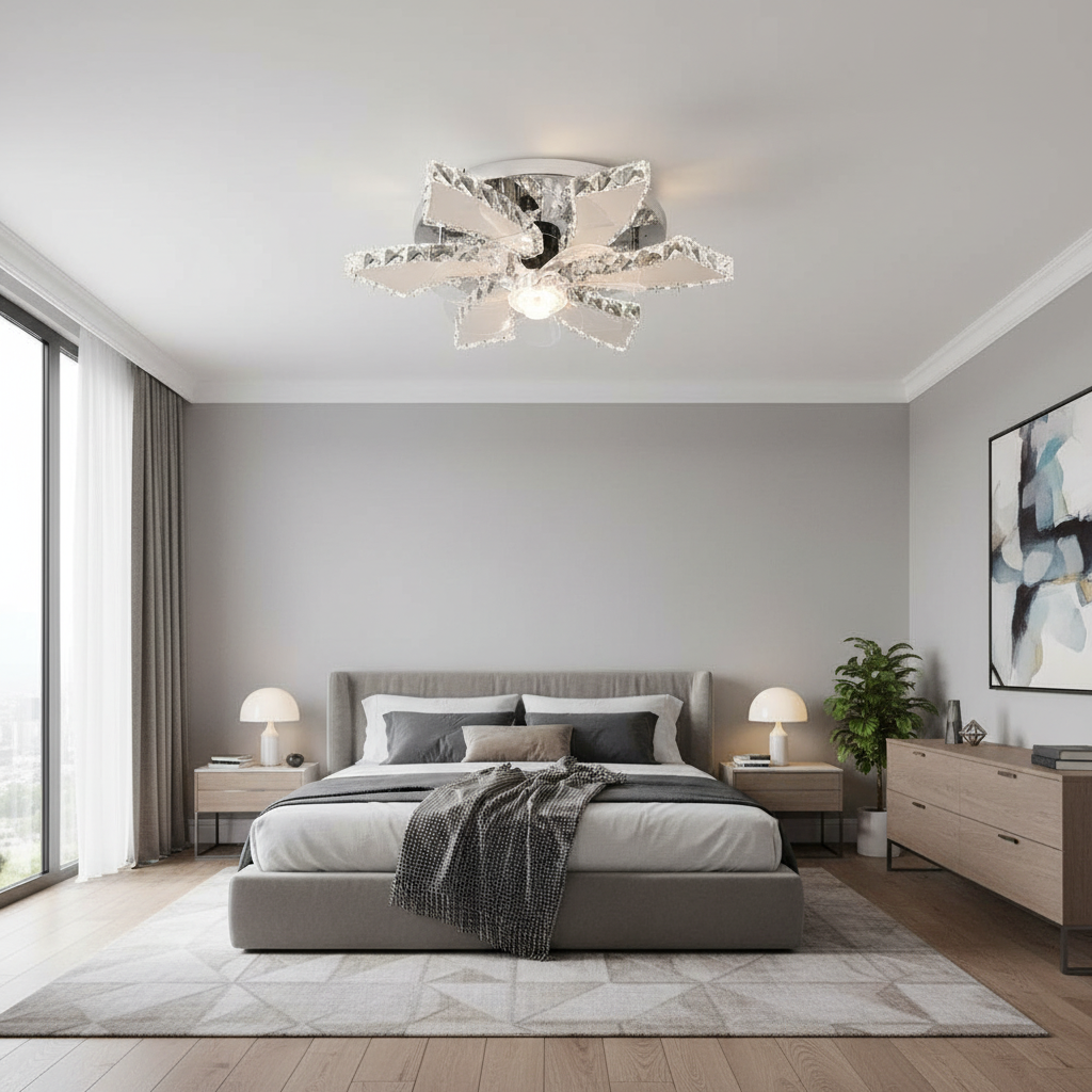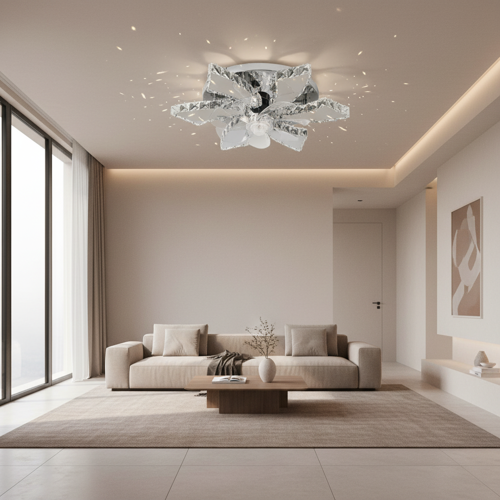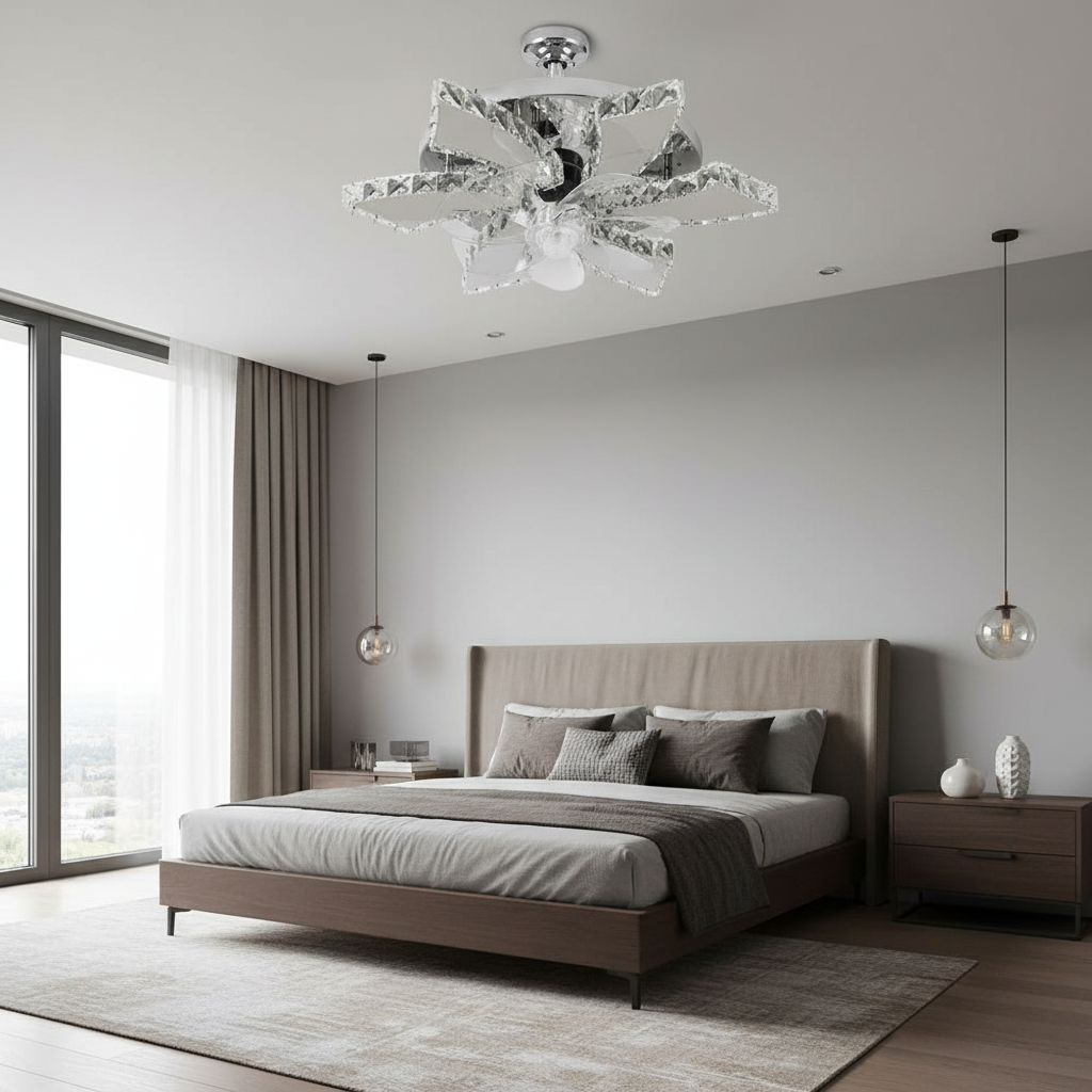 Lustre Ventilateur Pales Rétractables Cristal LED