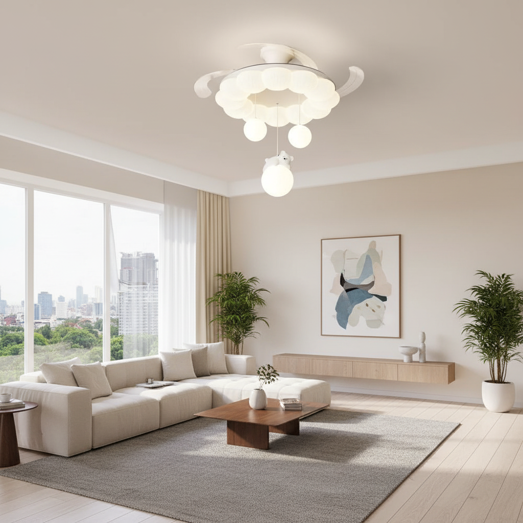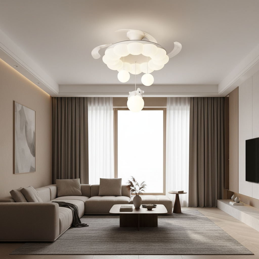 Ce lustre ventilateur combine une ventilation efficace et un éclairage LED de qualité pour transformer votre intérieur. Son design moderne crème apporte une touche d'élégance discrète, optimisant confort thermique et ambiance lumineuse. Profitez d'un environnement frais et bien éclairé avec ce luminaire silencieux et esthétique.Caractéristiques & performances