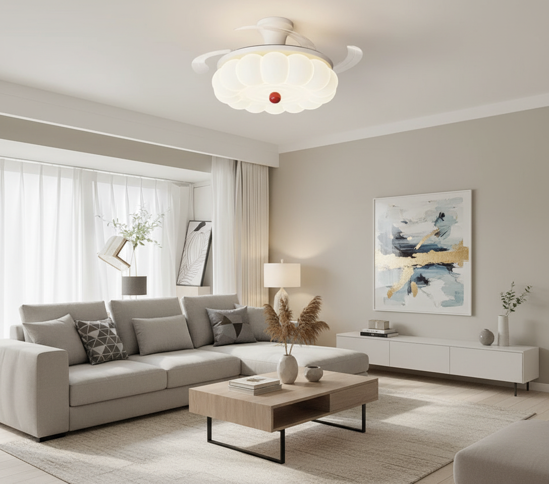 Lustre Ventilateur Crème Rétractable LED Silencieux
