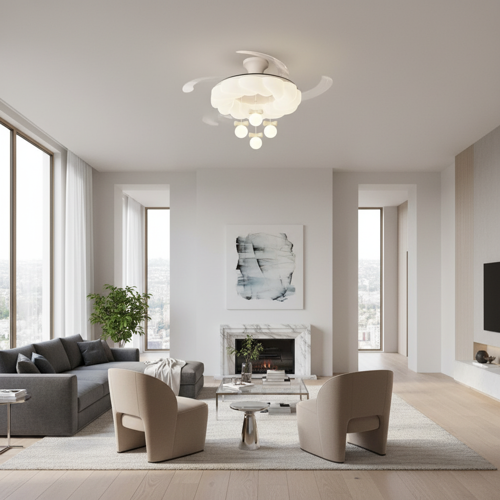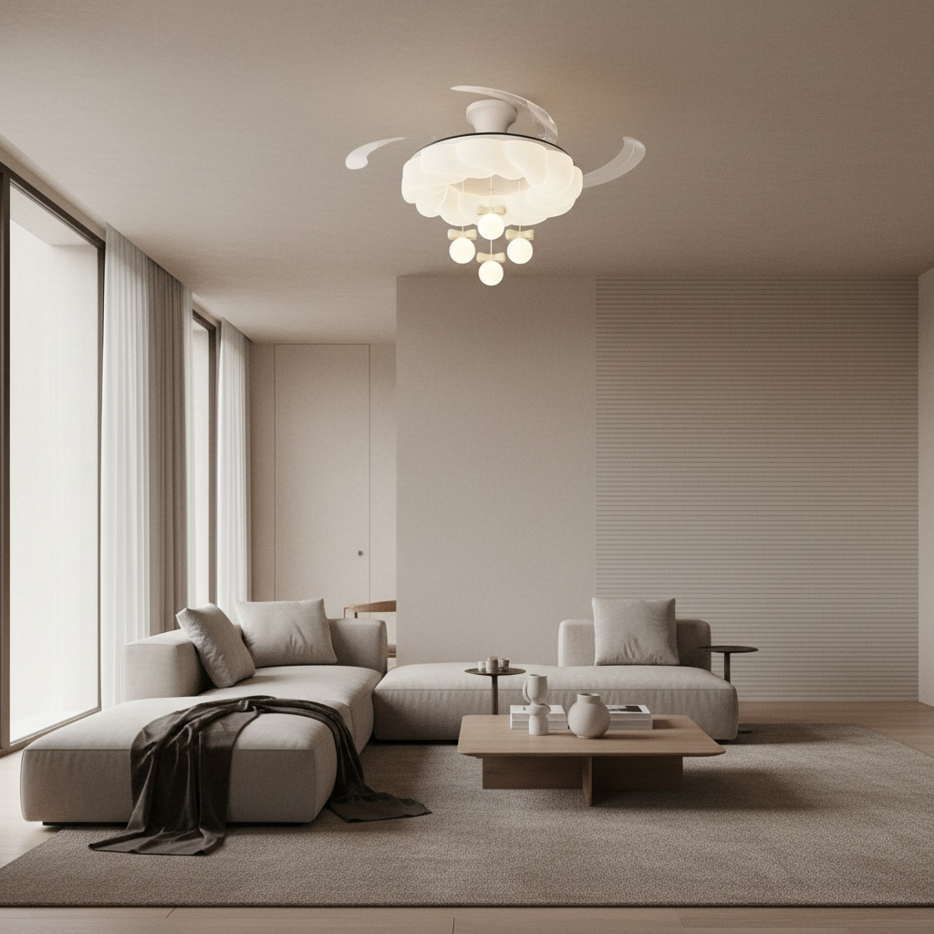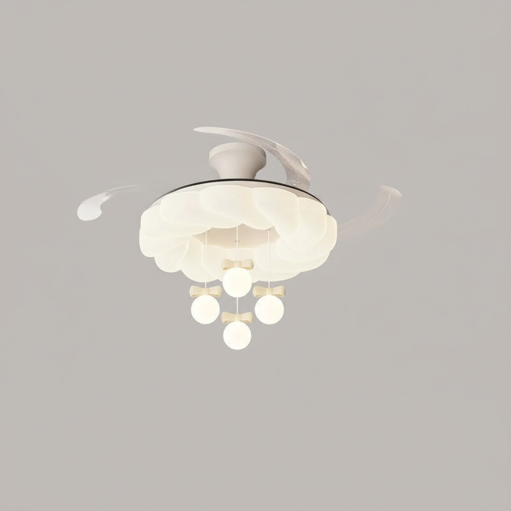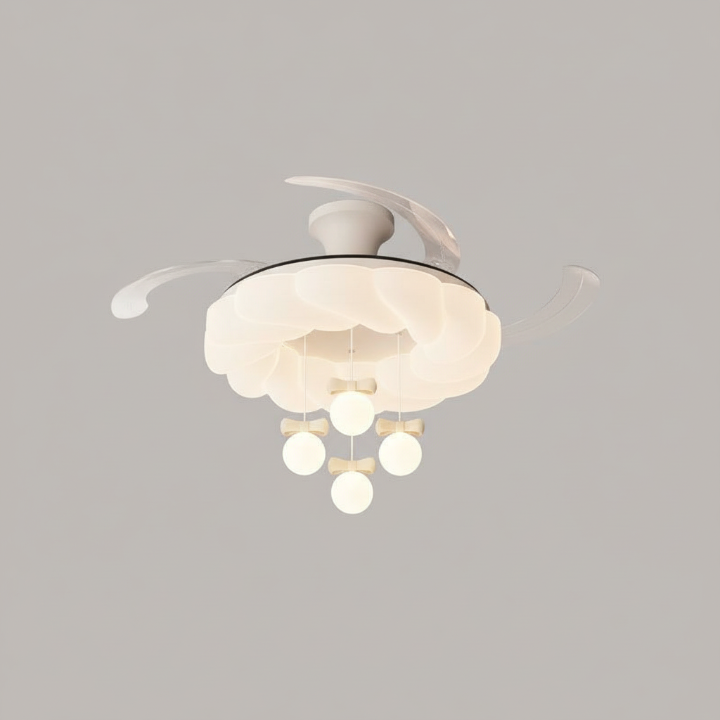 Lustre Ventilateur Crème Rétractable LED Silencieux