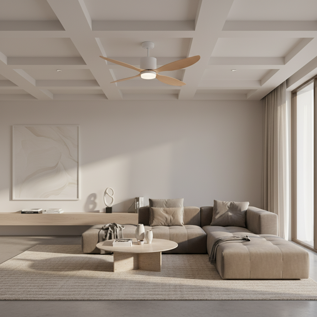 Ce lustre ventilateur moderne combine ventilation efficace et éclairage LED intégré. Son design contemporain, avec des pales effet bois, apporte une touche naturelle et chaleureuse, optimisant confort et esthétique.Caractéristiques & performances