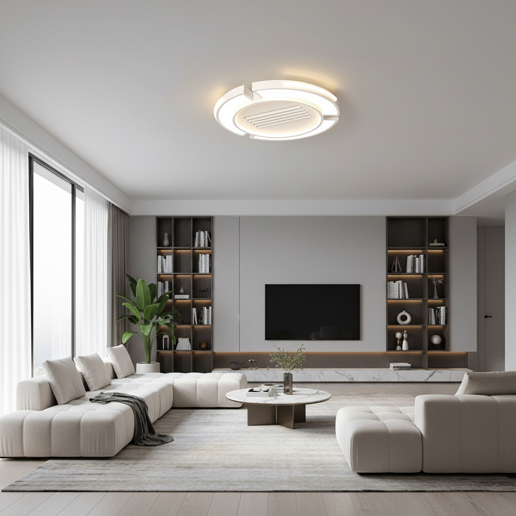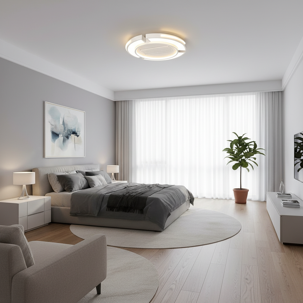 Optimisez votre espace avec ce lustre ventilateur sans pales, une fusion parfaite entre un luminaire LED design et une ventilation performante. Son style moderne et discret s'intègre harmonieusement dans les salons, chambres ou salles à manger, offrant confort thermique et ambiance lumineuse personnalisable.