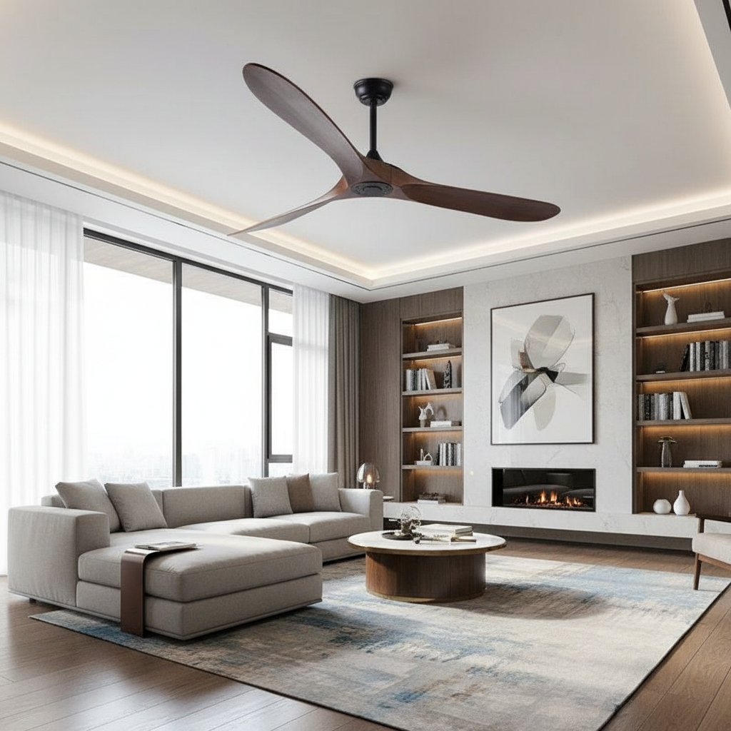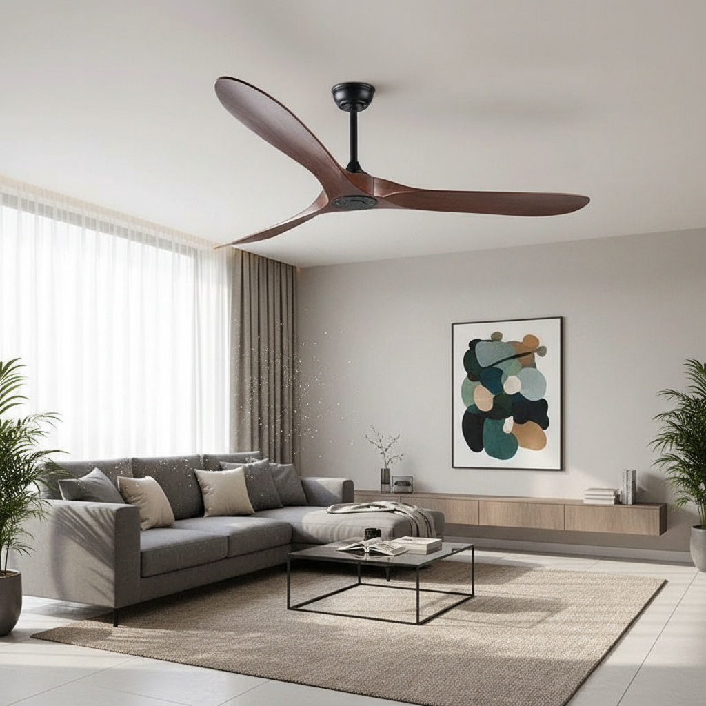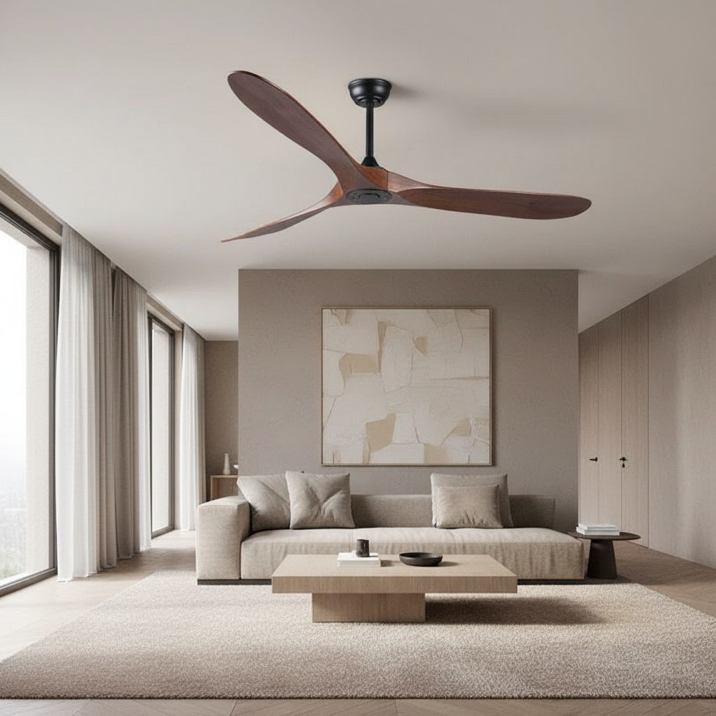 Ce lustre ventilateur allie ventilation puissante et design moderne épuré. Dépourvu de lumière, il est conçu pour maximiser le confort thermique et l'esthétique de votre intérieur. Ses pales en bois noir et sa structure robuste confèrent une touche naturelle et sophistiquée à toute pièce.Caractéristiques & performances