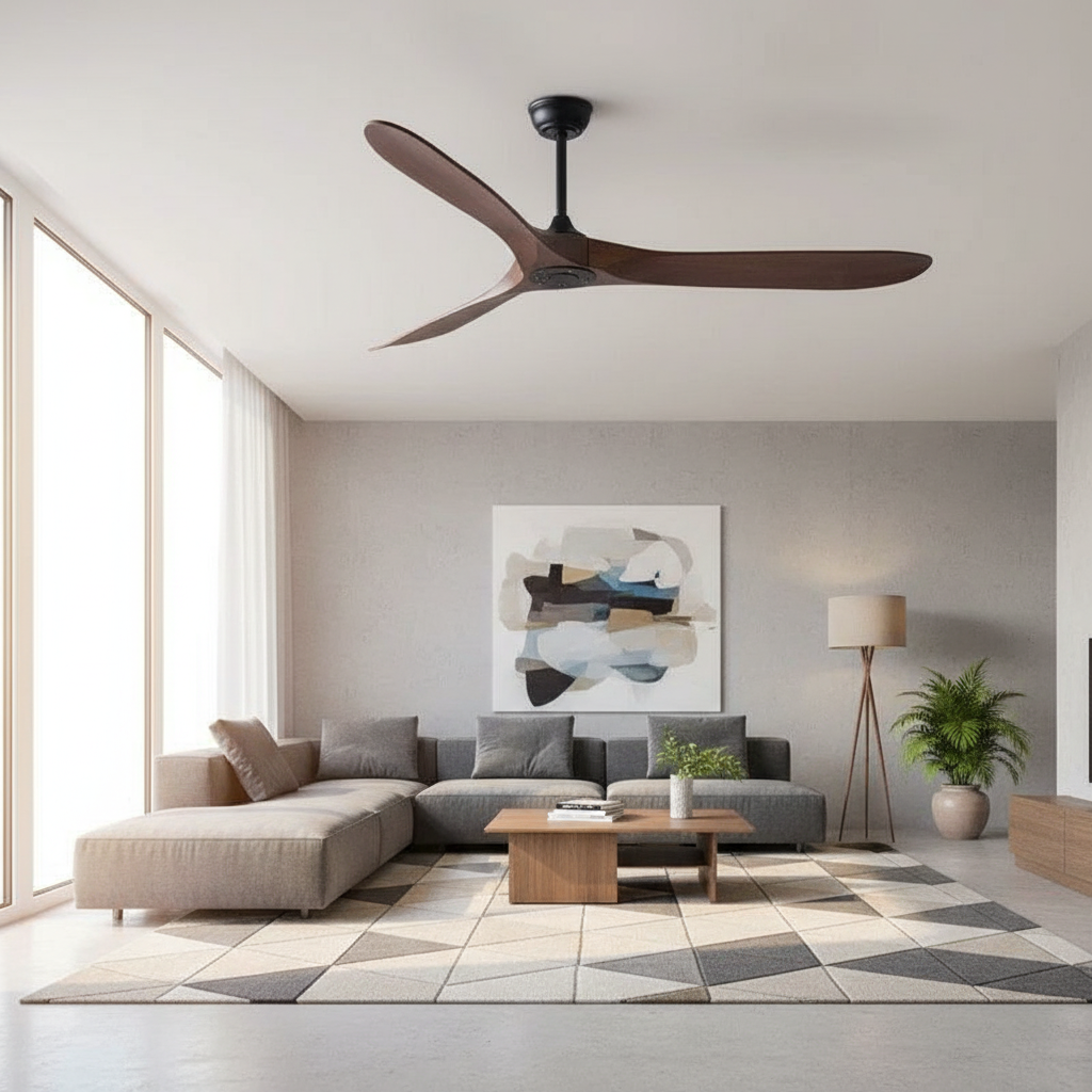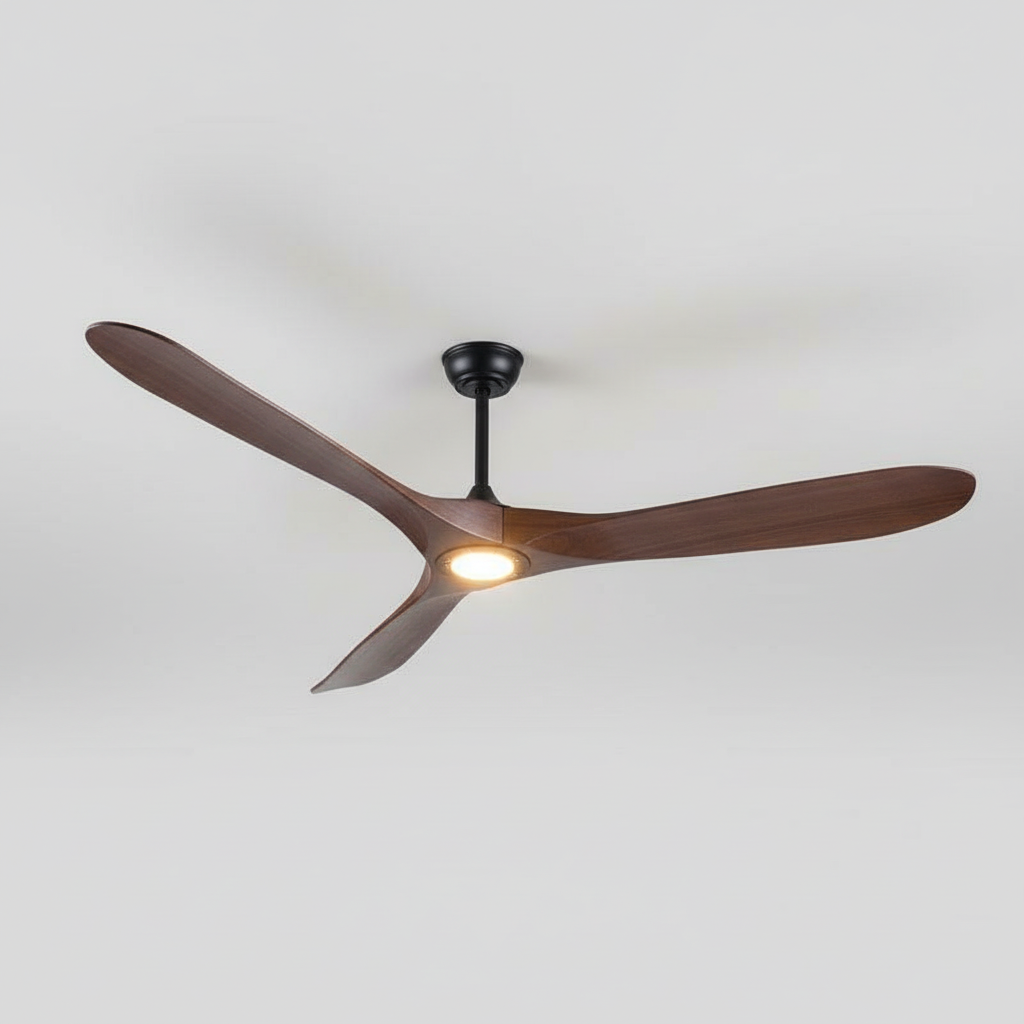 - Design contemporain avec trois pales en bois élégantes et finition noire.