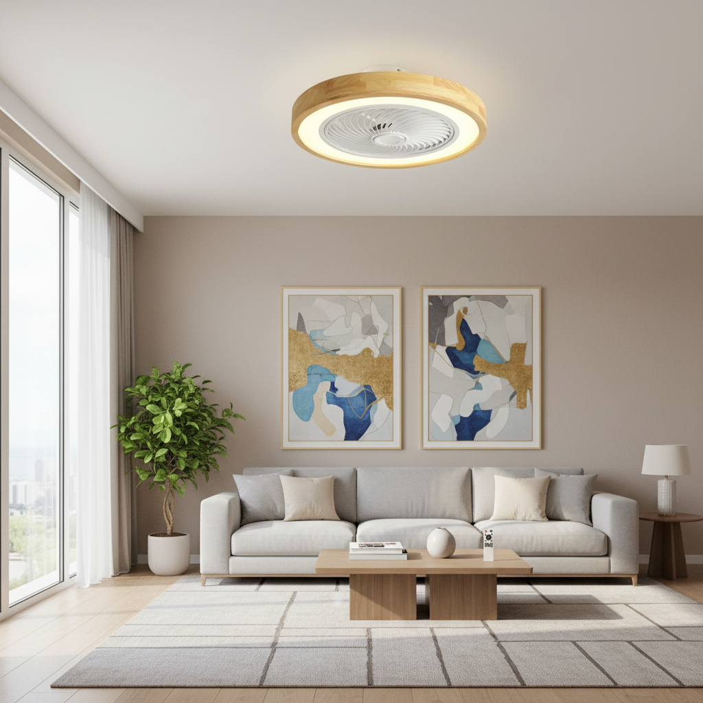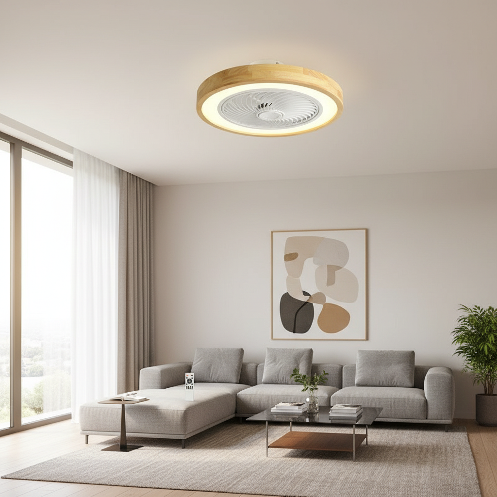 Lustre Ventilateur Bois Scandinave Ultra-mince Dimmable