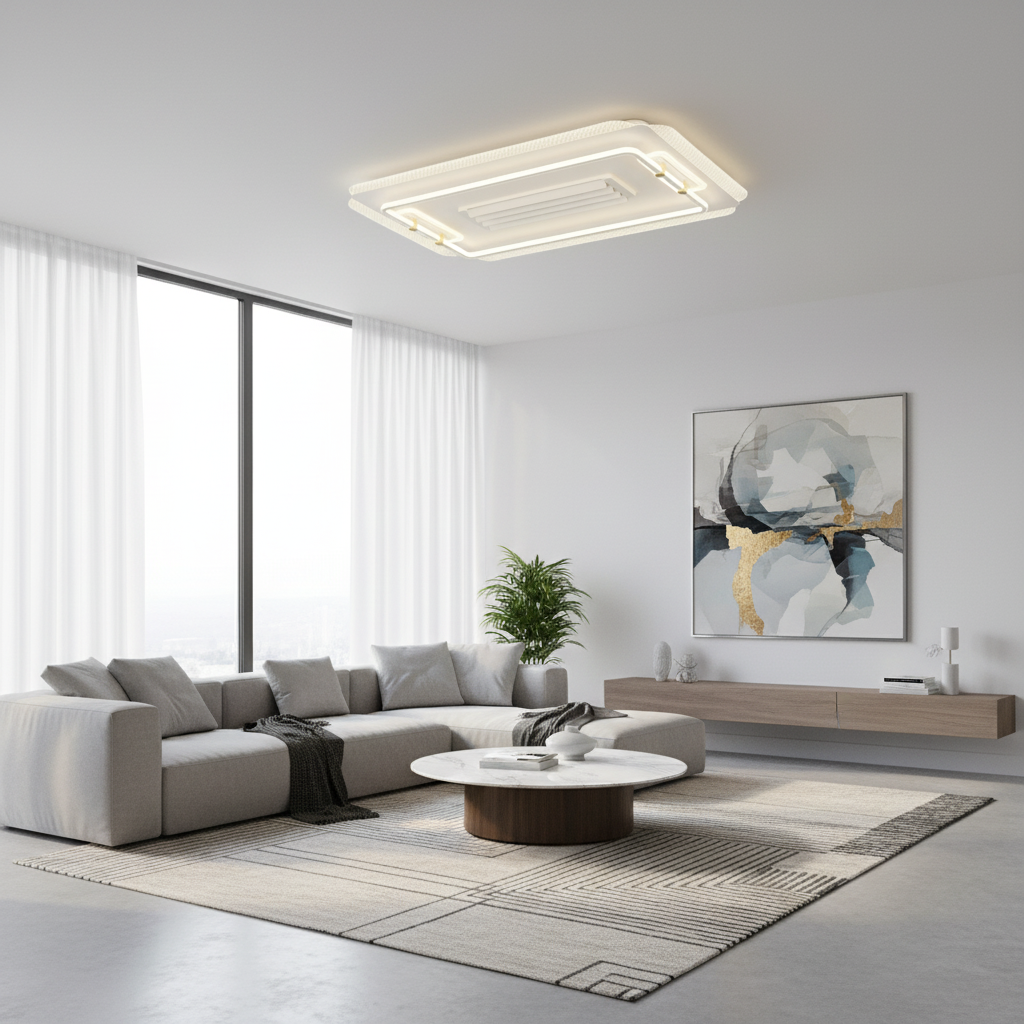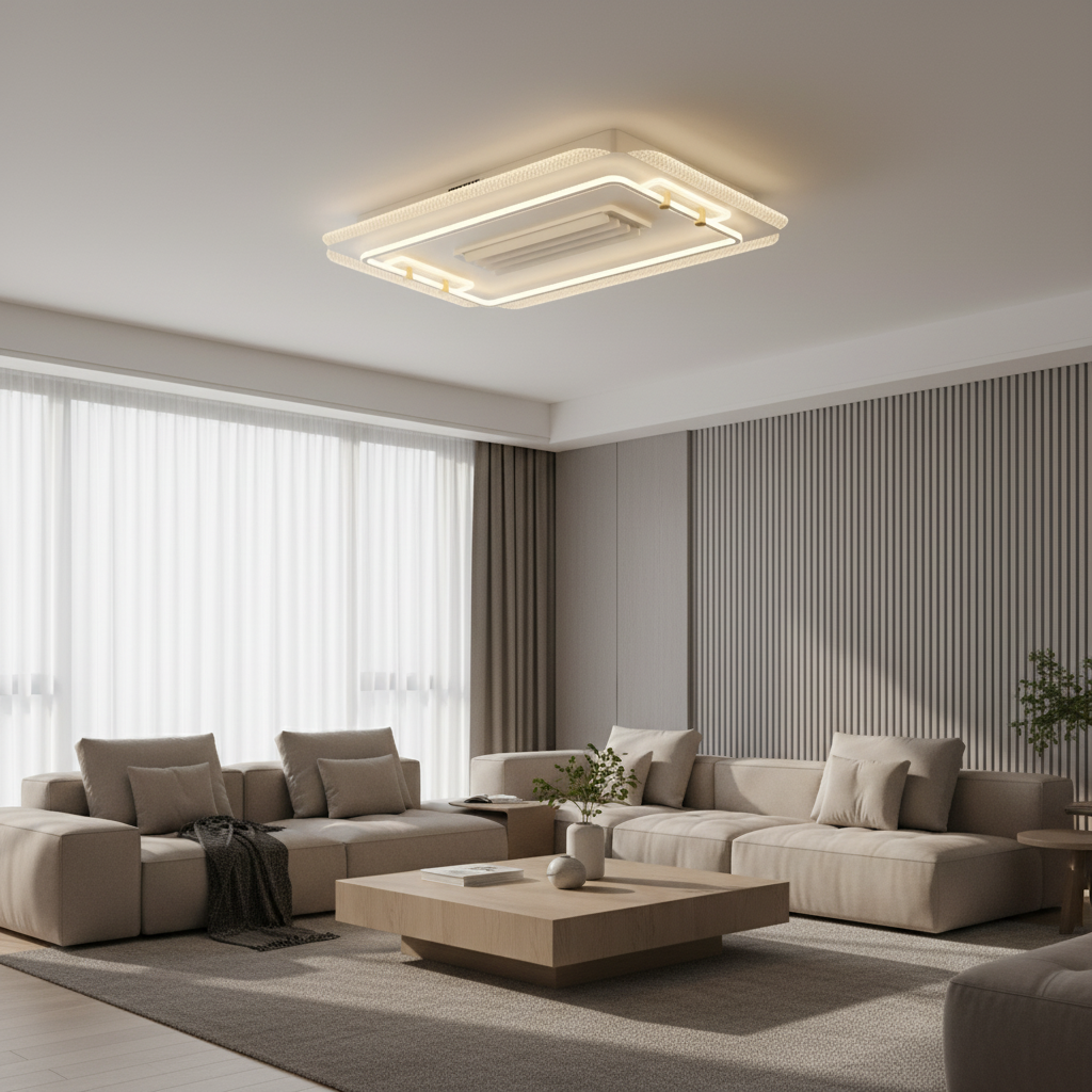 Fabriqué en aluminium et fer, ce modèle dimmable est robuste et certifié CE/CCC. Son éclairage LED intégré et sa ventilation sont entièrement contrôlables par télécommande. Un luminaire polyvalent au style contemporain.- Structure robuste en aluminium et fer.