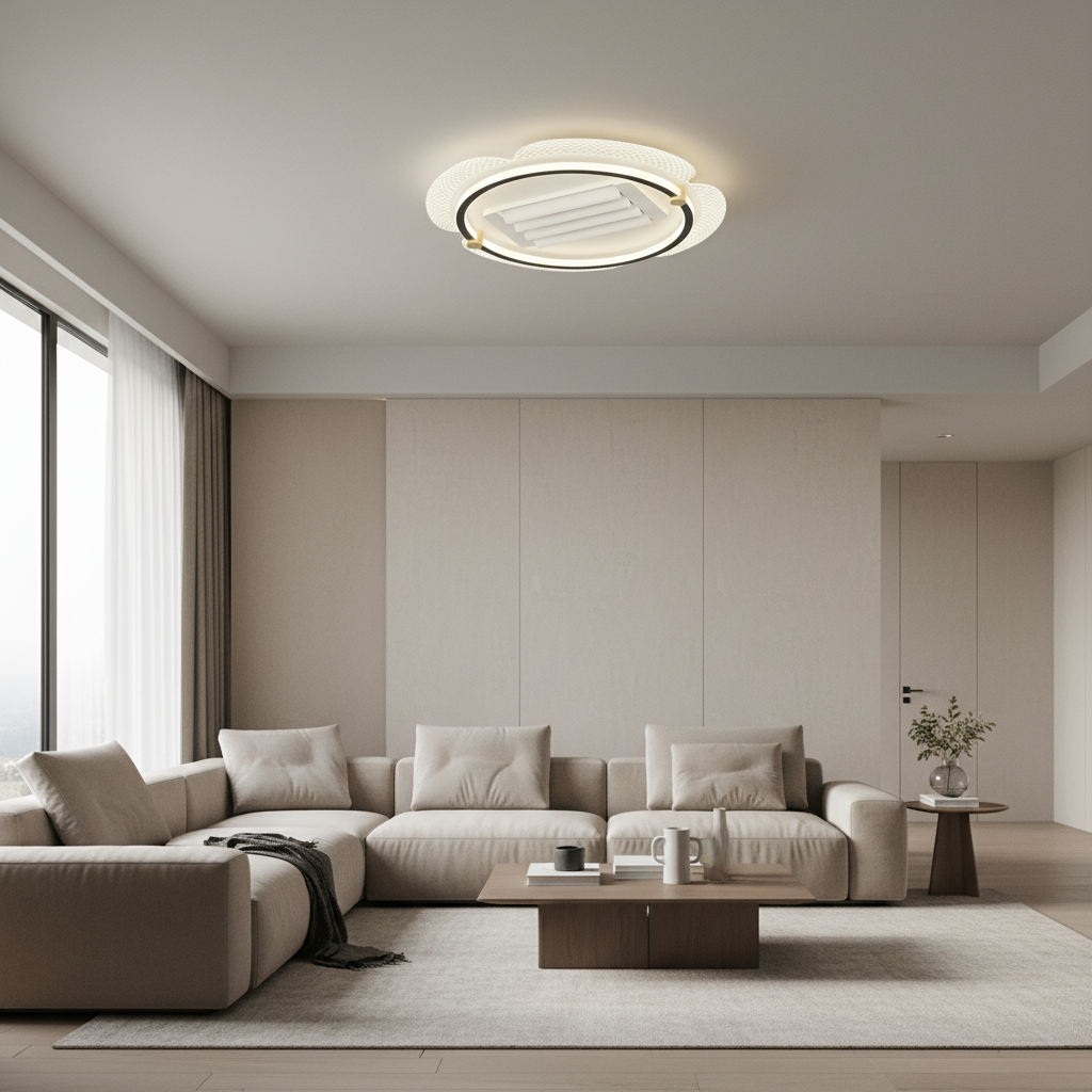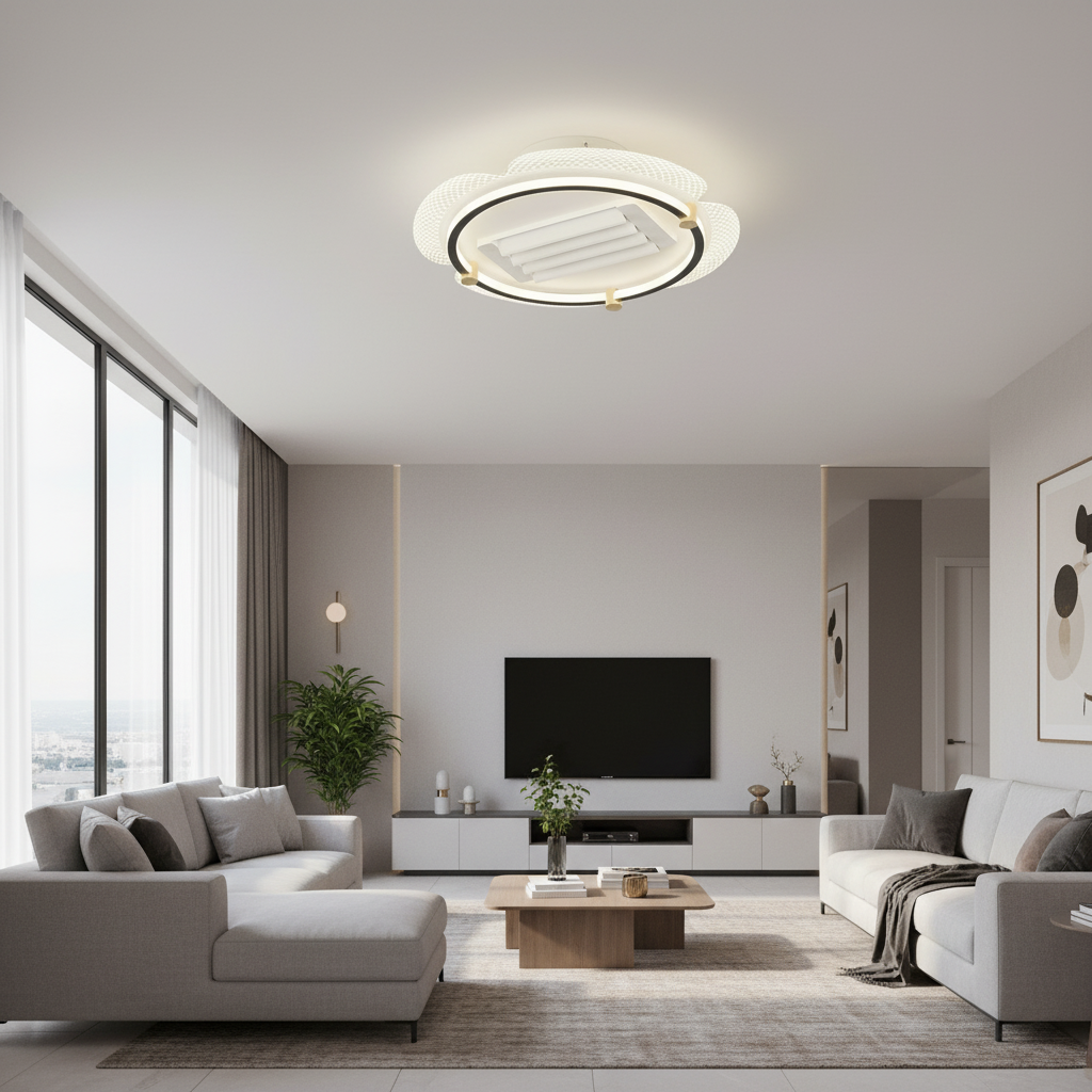 Ce modèle combine la robustesse de l'aluminium et du fer avec une esthétique moderne. Ses pales rétractables se déploient pour une ventilation optimale et se dissimulent discrètement lorsque seul l'éclairage est nécessaire. Profitez d'une lumière LED intégrée, entièrement dimmable, et d'une fonction réversible pour un confort idéal en toute saison, le tout contrôlé par télécommande.- Ventilation efficace avec pales rétractables