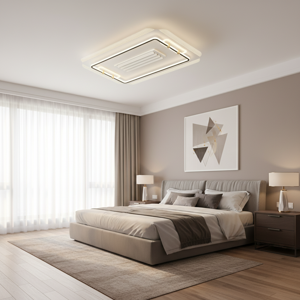 Fabriqué en aluminium et fer robustes, ce lustre ventilateur de style moderne offre une solution deux-en-un pour votre salon, chambre ou salle à manger. Il intègre un éclairage LED dimmable pour une ambiance sur mesure et des pales réversibles et rétractables pour une ventilation adaptée à chaque saison, le tout contrôlé à distance.- Ventilation puissante et discrète grâce aux pales rétractables.