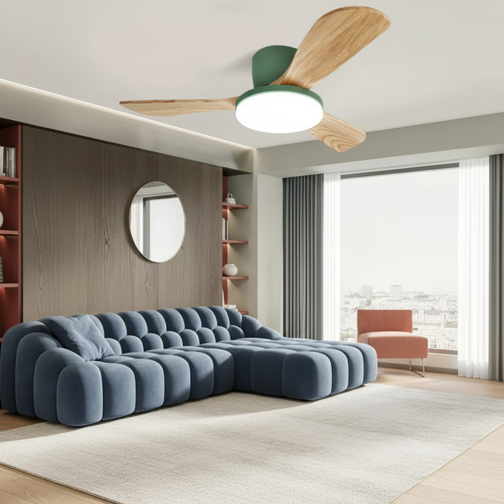 Ce ventilateur de plafond lumineux se distingue par son moteur DC silencieux et ses pales en ABS réversibles, disponibles en 42 ou 52 pouces. L'éclairage LED intégré offre 3 couleurs de lumière et est entièrement dimmable, parfait pour votre salon ou votre chambre. Le contrôle se fait aisément via une télécommande.