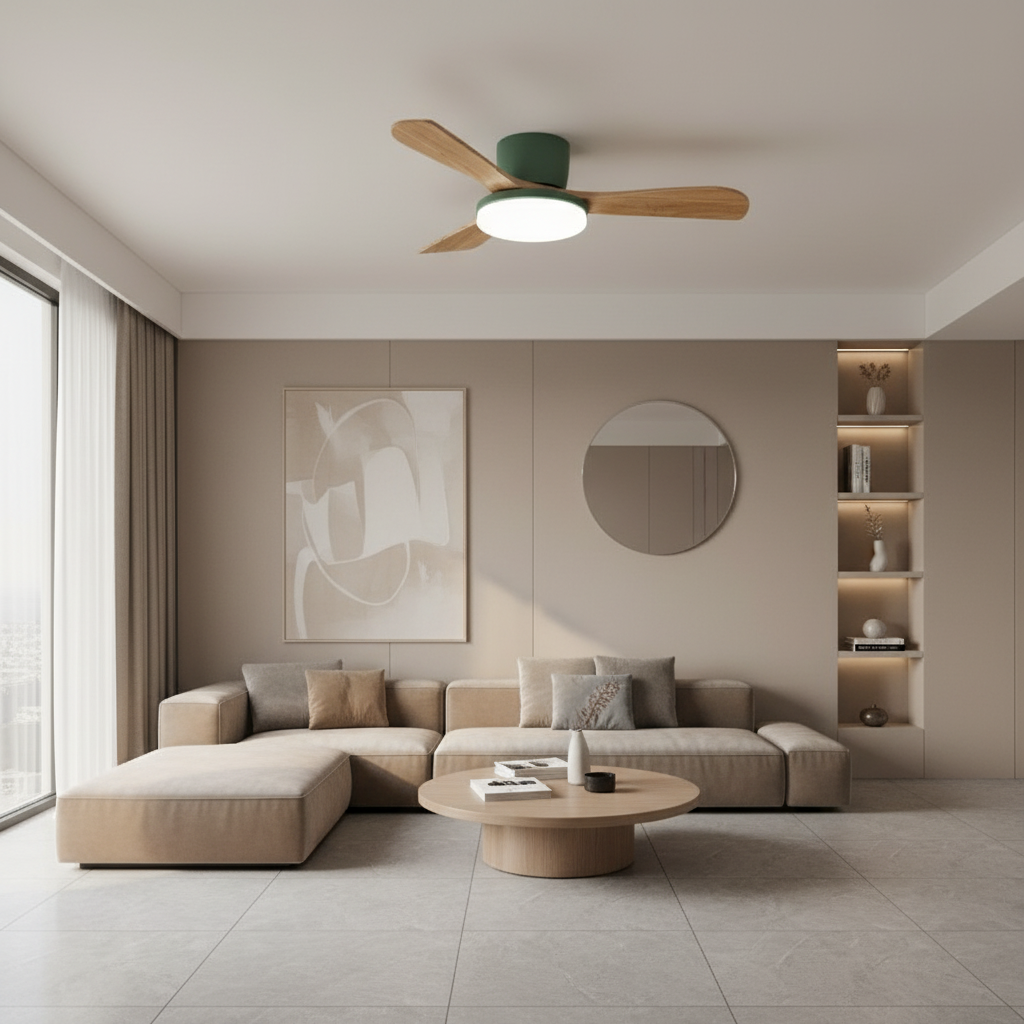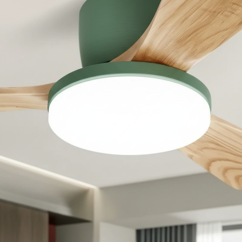 Lustre Ventilateur Bois Moderne LED Dimmable