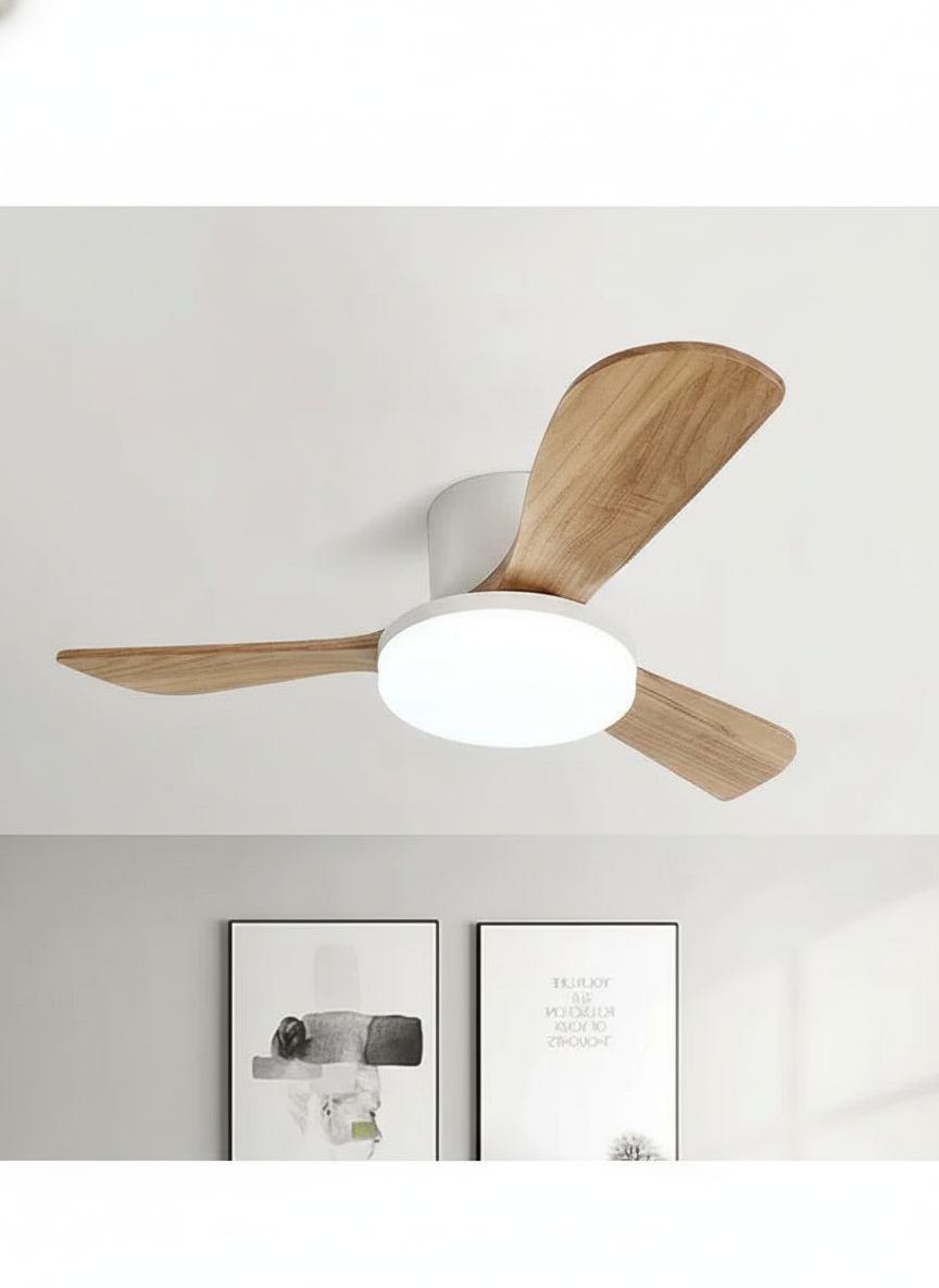Lustre Ventilateur Bois Moderne LED Dimmable